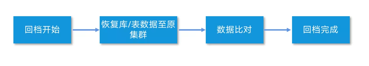 无论是按时间点恢复还是按备份集恢复,都需要先将备份数据回档到原集群中,然后进行数据比对。