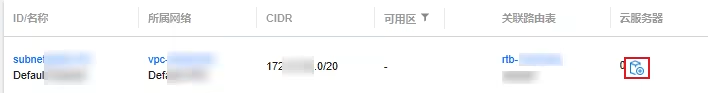 3. 在需要添加云服务器的子网所在行,单击添加云服务器的图标。