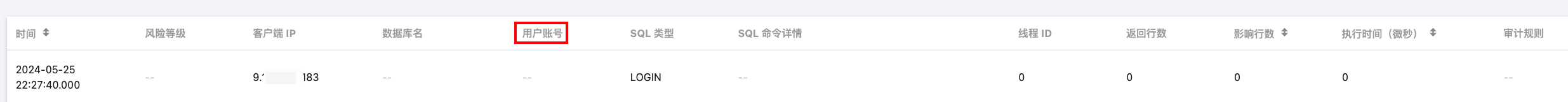 审计日志页面,字段“用户账号”下可查询对应操作的用户账号,支持审计到每个用户名。