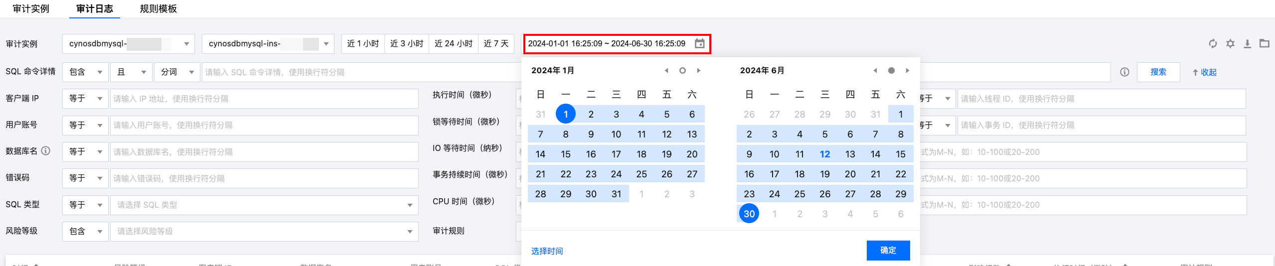 审计日志页面,在时间框选择六个月的时间范围,可以查看选中六个月的日志。