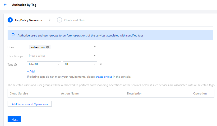 4. 选择用户或用户组以及标签键与标签值。