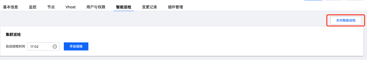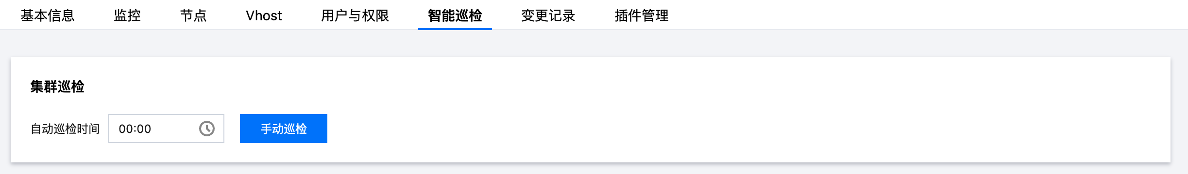 6. 单击手动巡检即可立即开始巡检。可以选择业务低峰期设置智能巡检时间,TDMQ RabbitMQ 版每天会在指定的自动巡检时间进行智能巡检。