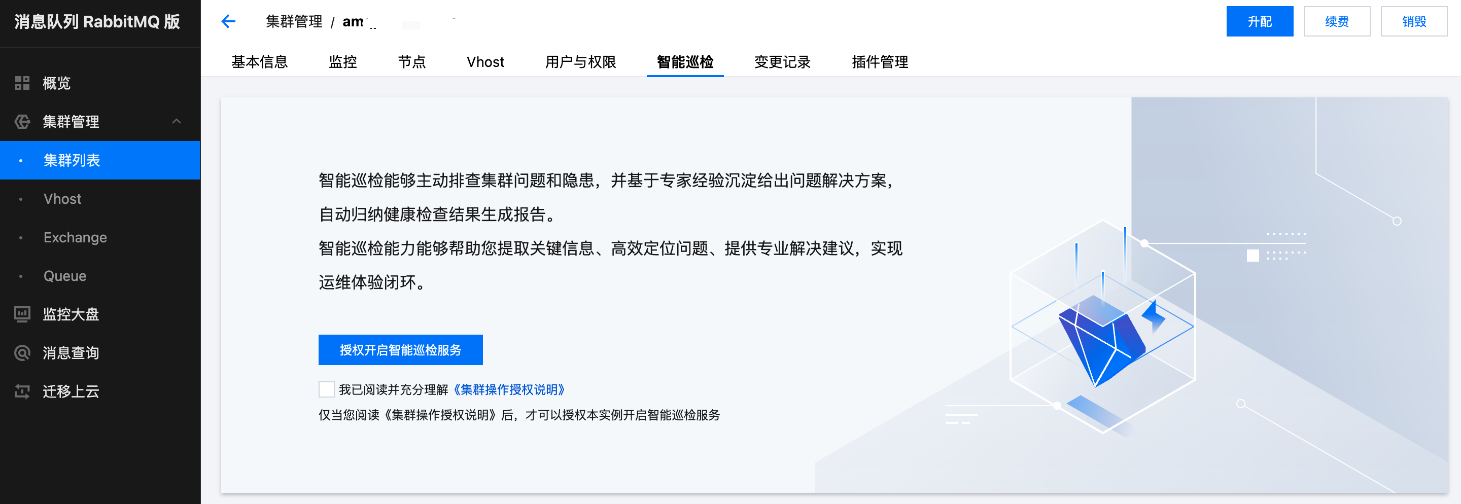 5. 确认无误后,勾选我已阅读并充分理解《集群操作授权说明》。然后单击授权开启智能巡检服务,即可进入智能巡检功能。