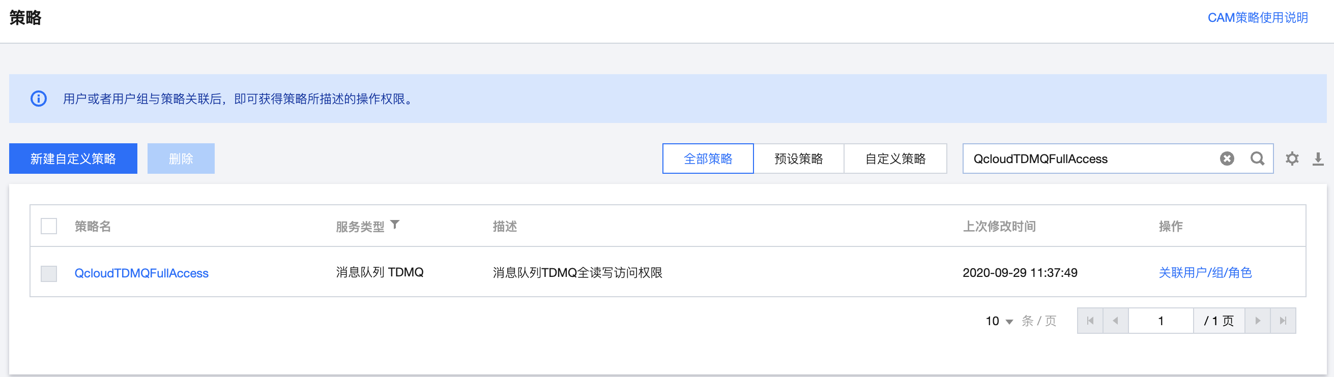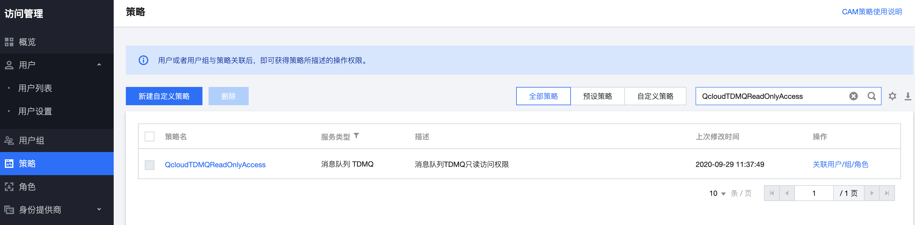 开源托管版:QcloudTDMQReadOnlyAccess。
