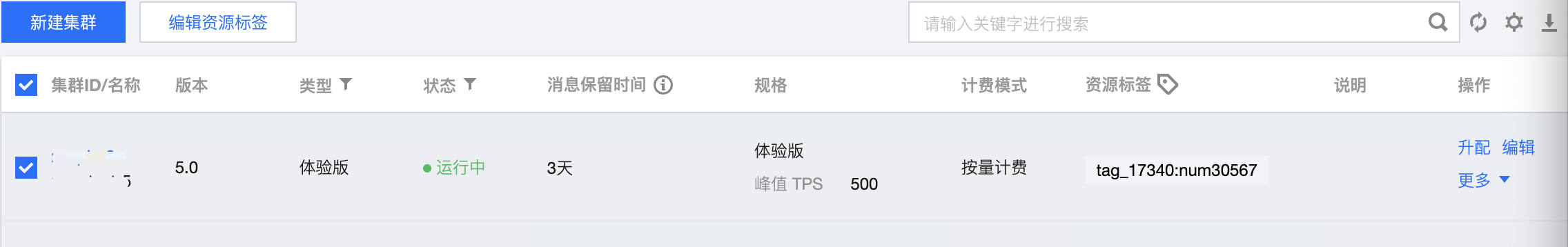 2. 勾选目标集群,单击左上角的编辑资源标签,为集群绑定好资源标签。