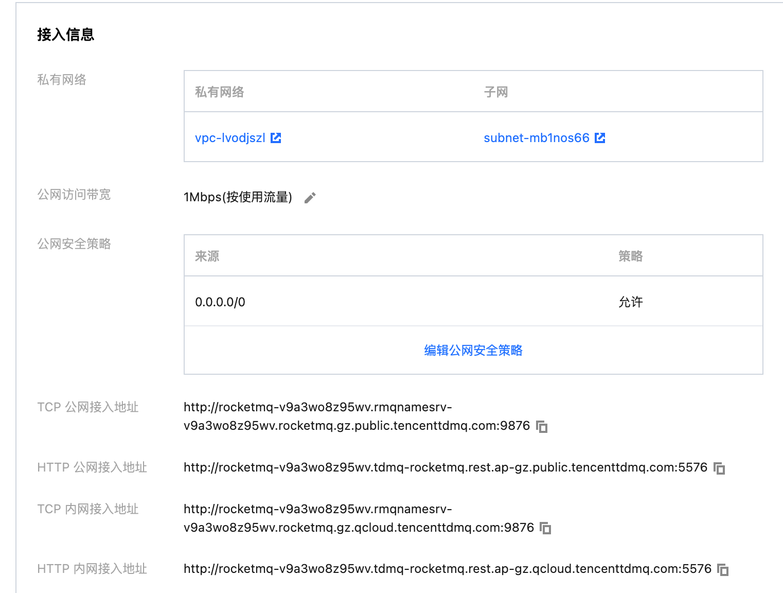 name-server | 集群接入地址,在控制台集群基本信息页面的接入信息模块获取。 ![]() |