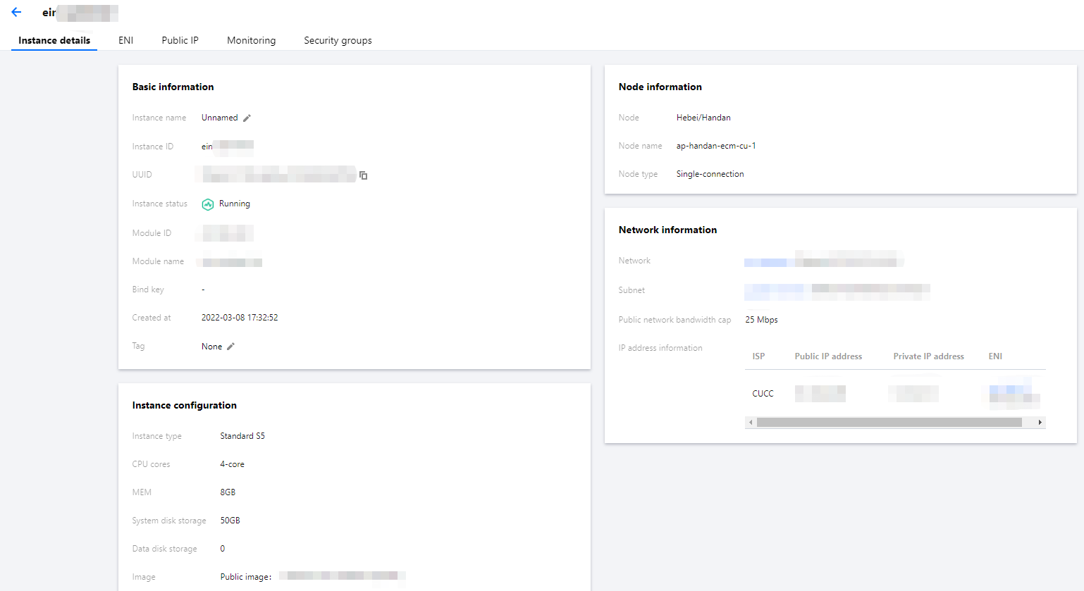 在完成边缘计算机器的实例创建之后,您可以在控制台中查看实例详情。