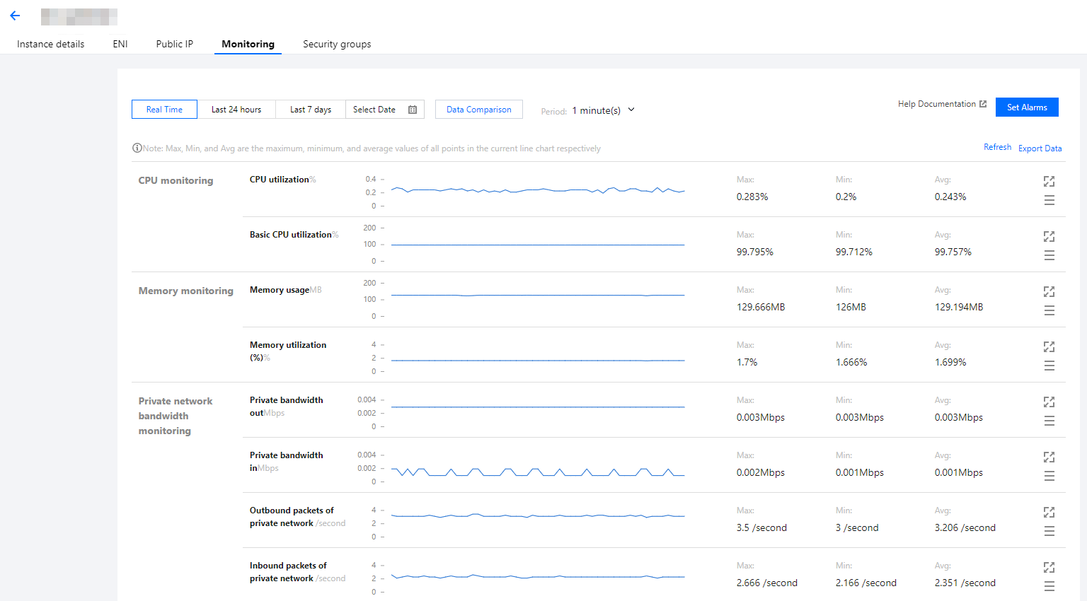 在监控页面,您还可以选择时间维度筛选数据和导出数据,方便您更轻松的管理边缘计算机器实例。