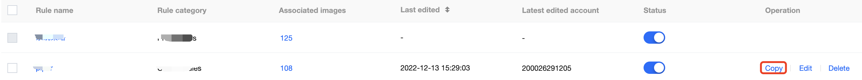 4. 操作:系统策略操作栏仅复制规则,用户自定义规则支持复制、编辑和删除。
