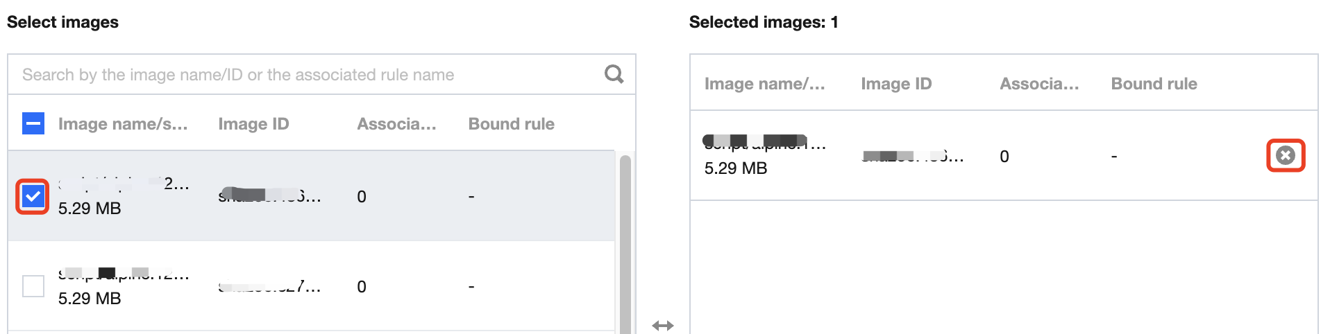 镜像范围:全部镜像和自选镜像。其中单击所需的自选镜像或图标,即可选中或删除自选镜像。