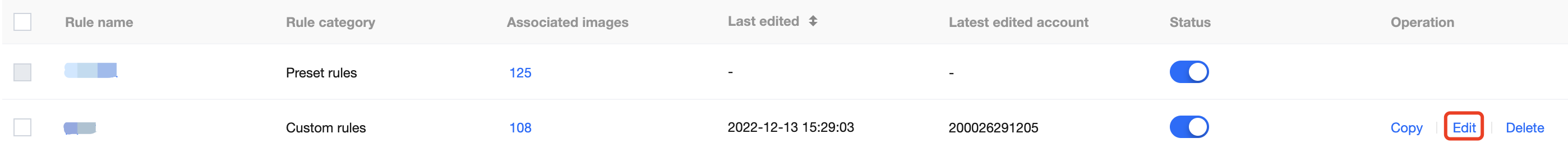3. 在编辑规则设置页面,可修改规则的基本信息、配置规则和镜像生效范围。