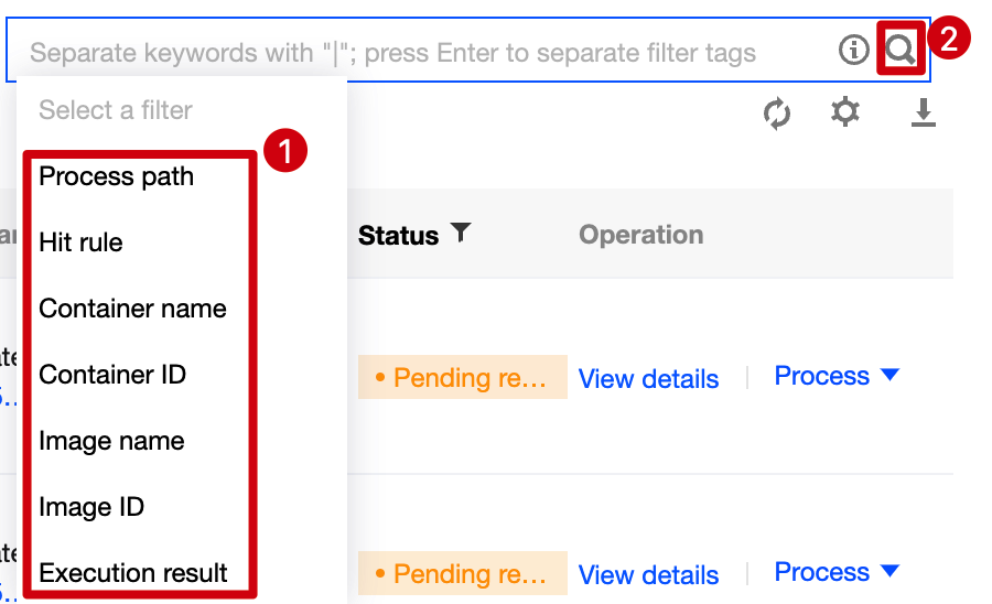 1. 登录 容器安全服务控制台,在左侧导航中,单击高级防御 > 异常进程 > 规则配置,进入规则配置页面。 2. 在规则配置页面,单击搜索框,可通过“规则名称”关键词对配置规则进行查询。