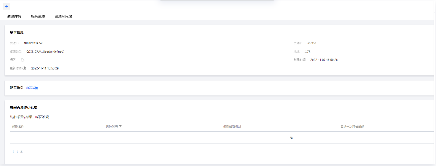 配置信息 Configuration | - | 详细配置信息,每一资源类型的个性化配置信息字段不同 |