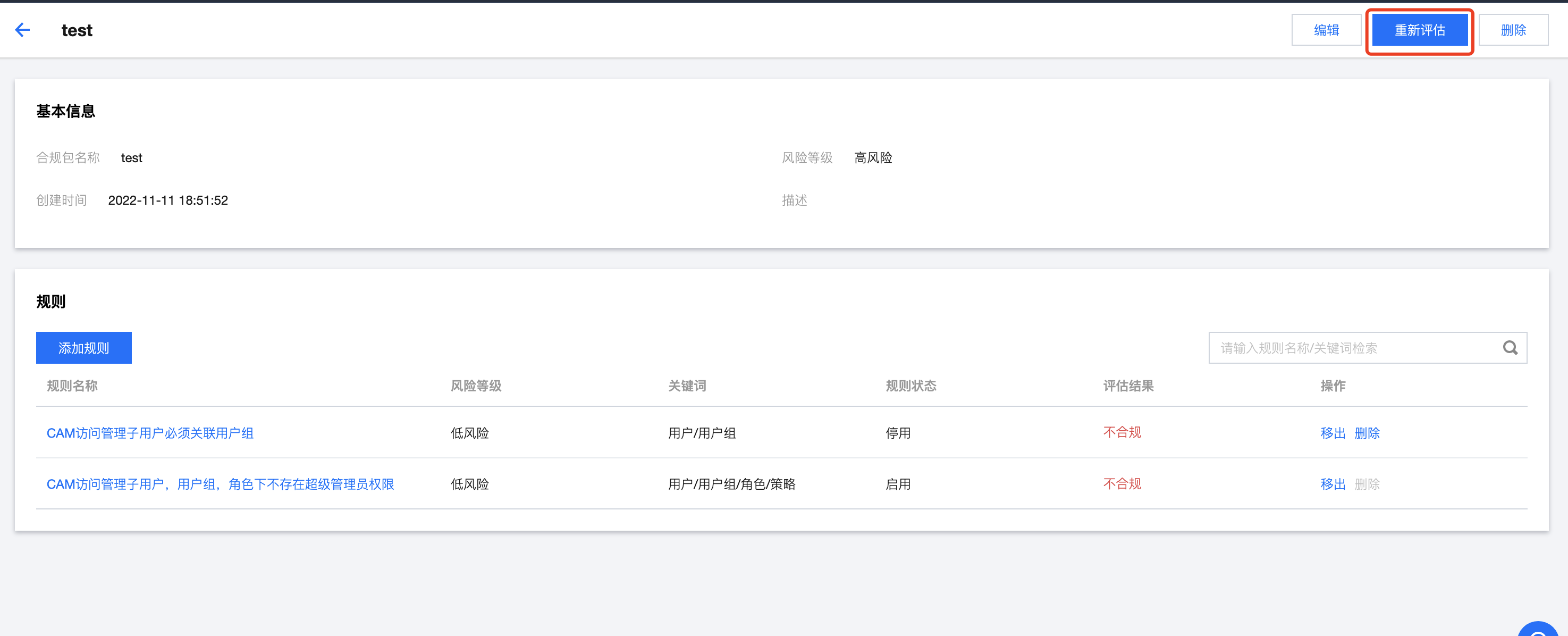配置审计中已启用的合规包,可以由系统自动触发评估,或手动触发评估。