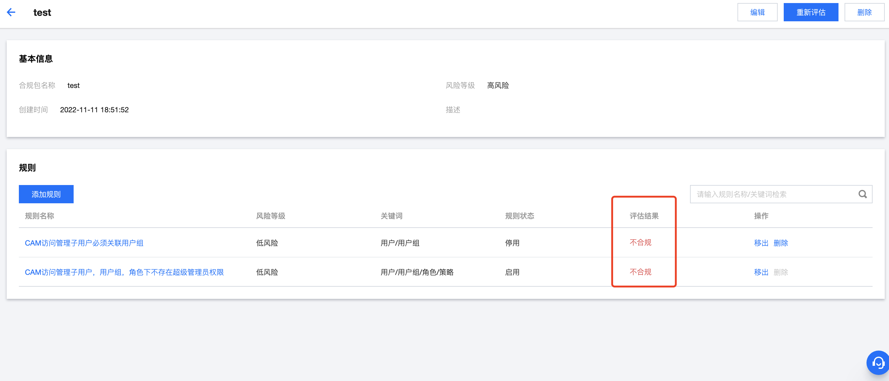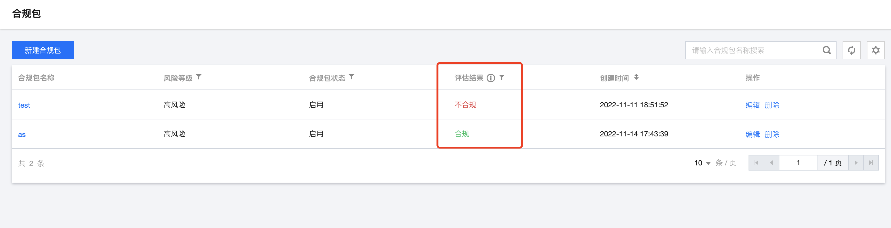 查看每一合规包的评估结果。合规包内所有规则均评估为合规,则合规包评估结果为合规,否则不合规。