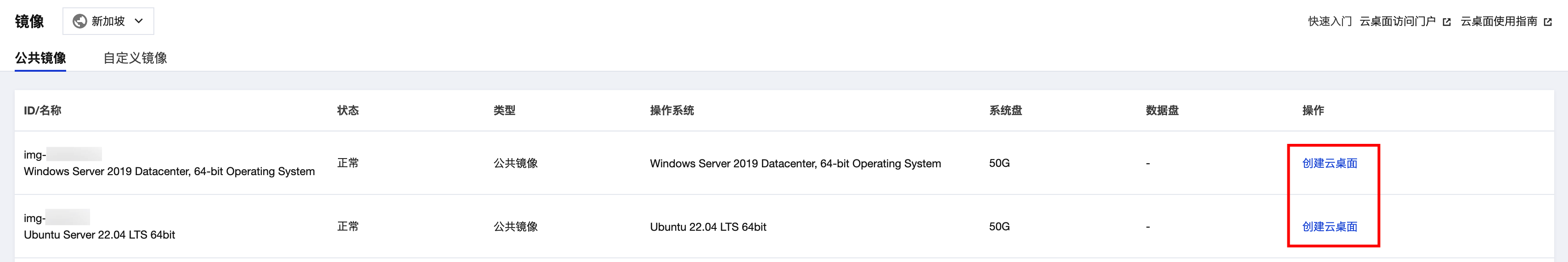 创建云桌面
