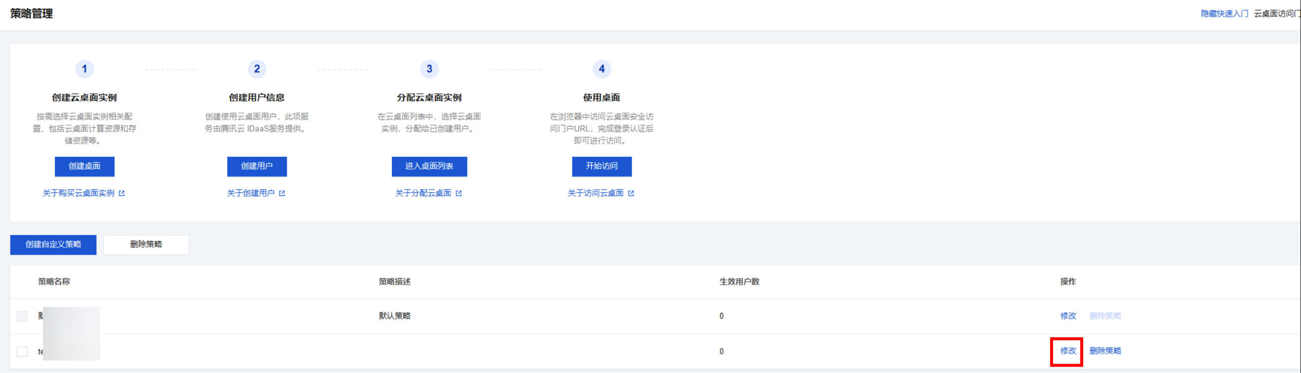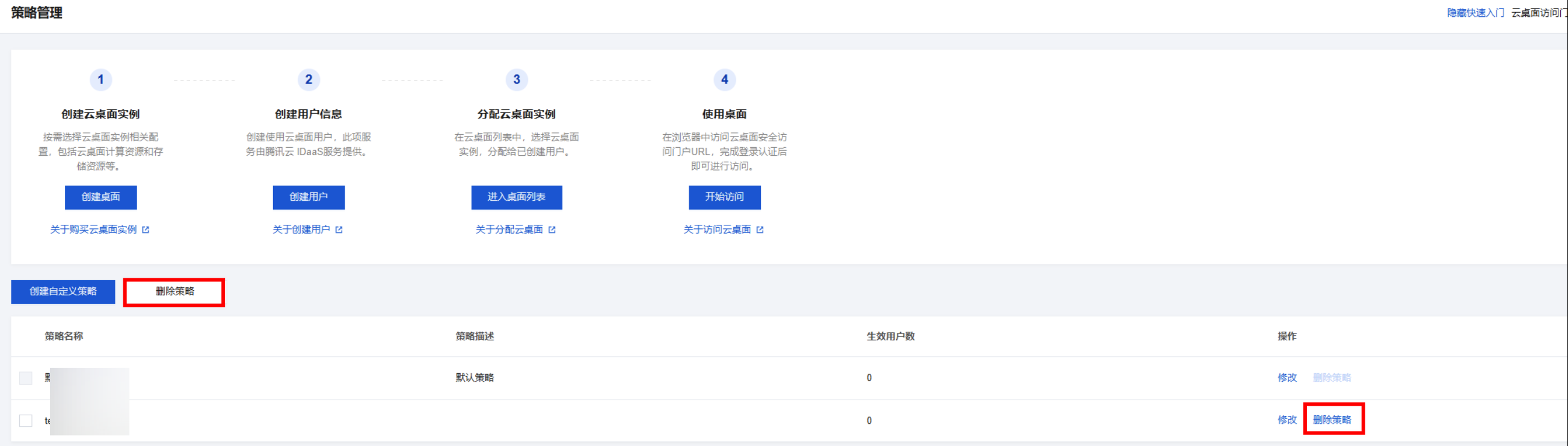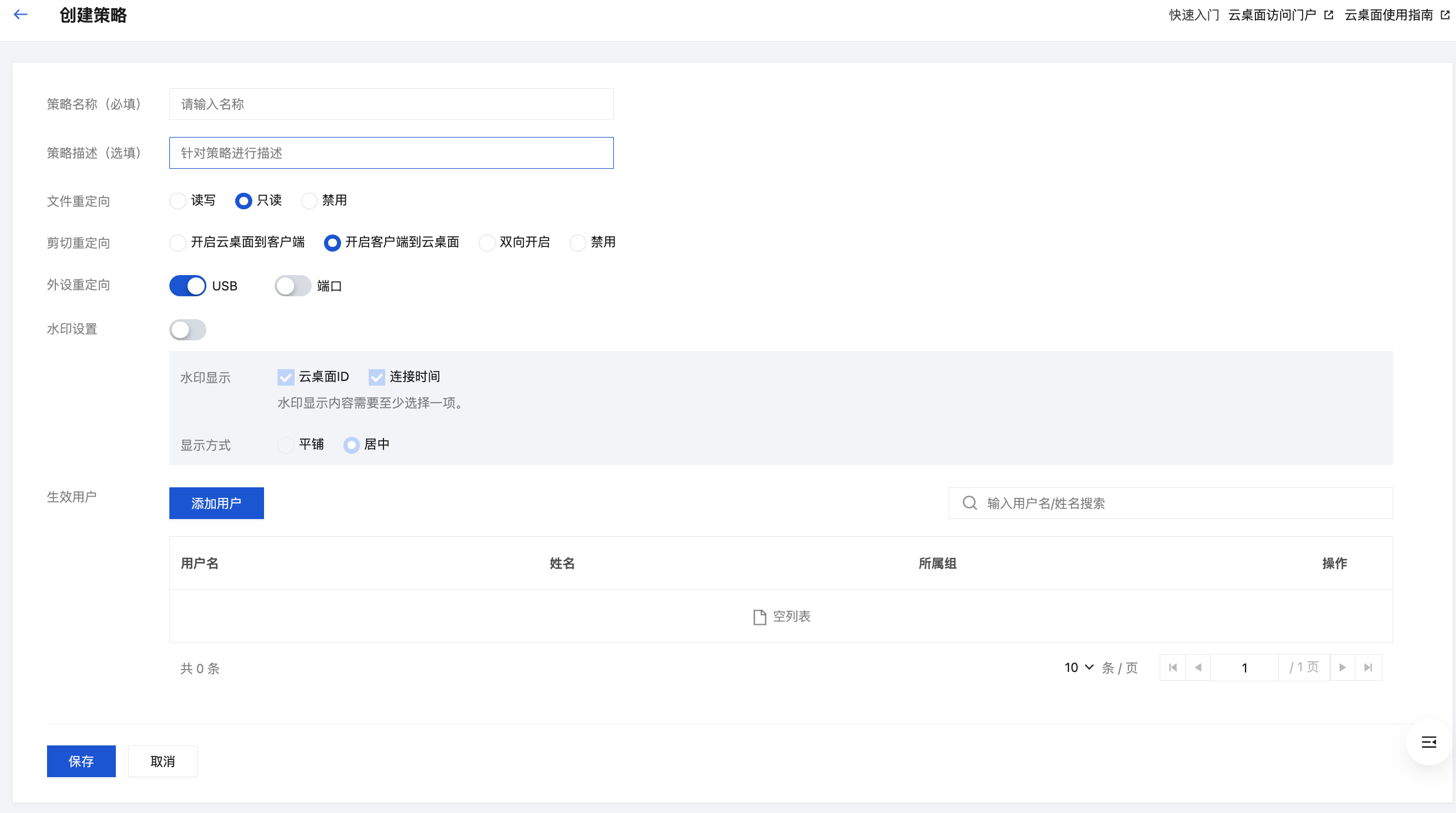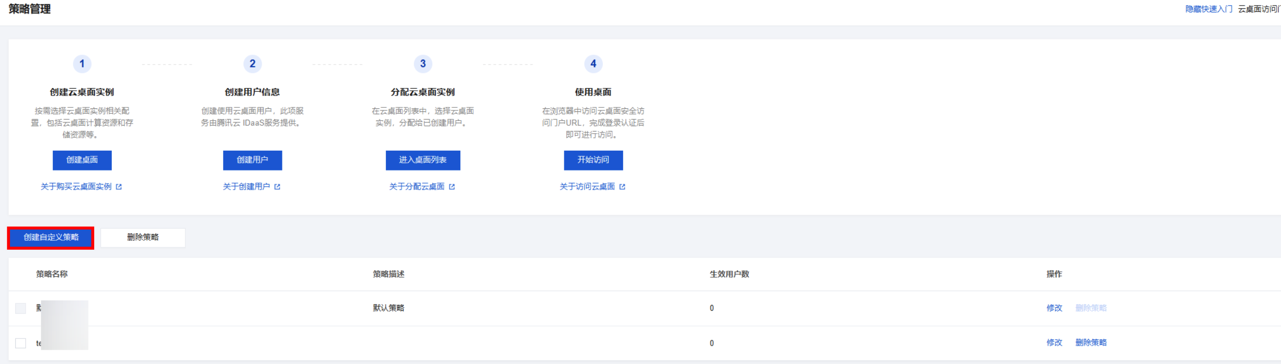 策略名称 | 用于区分云桌面使用策略。 |