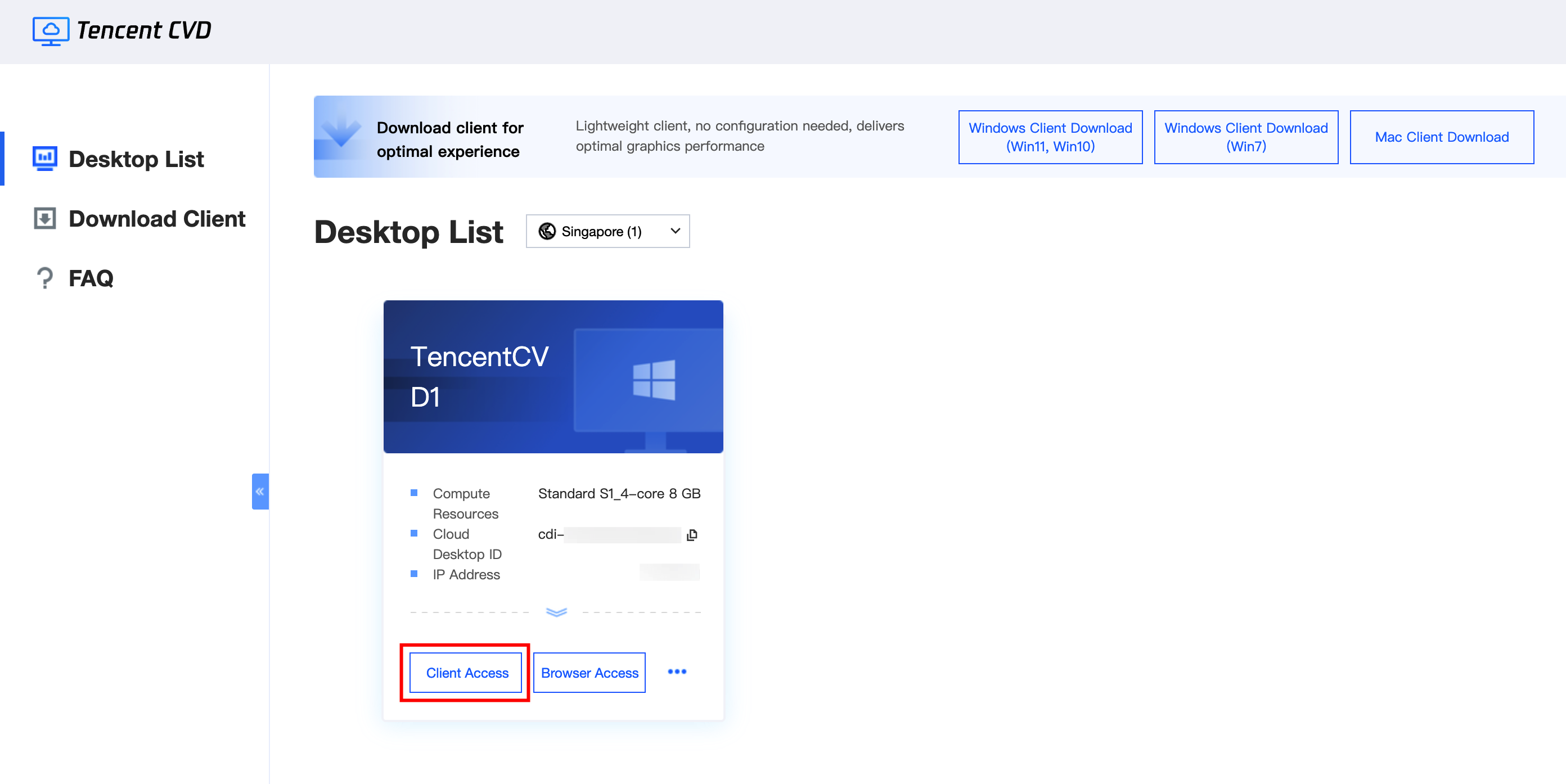为了获得更好的云桌面访问体验,建议您使用客户端访问。