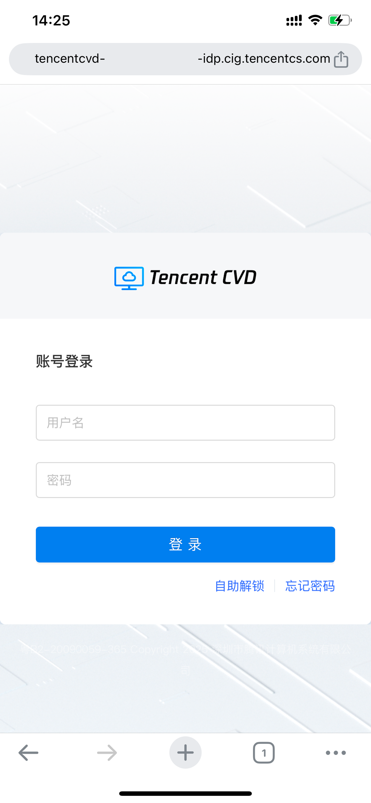 2. 获取云桌面登录地址 后,在移动设备的浏览器(推荐使用 Chrome 浏览器)内,打开云桌面访问门户,输入用户名密码进行登录。 3. 登录后,您可以通过浏览器访问或客户端访问的方式来访问云桌面。
