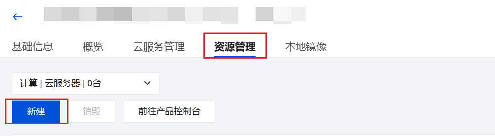 4. 单击资源管理,选择云服务器标签,单击新建即可配置云服务器。