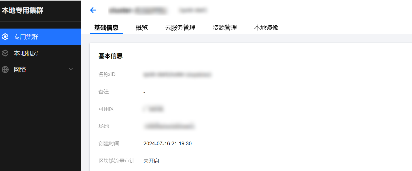 2. 在左侧导航栏,单击专用集群,进入本地专用集群管理页面。