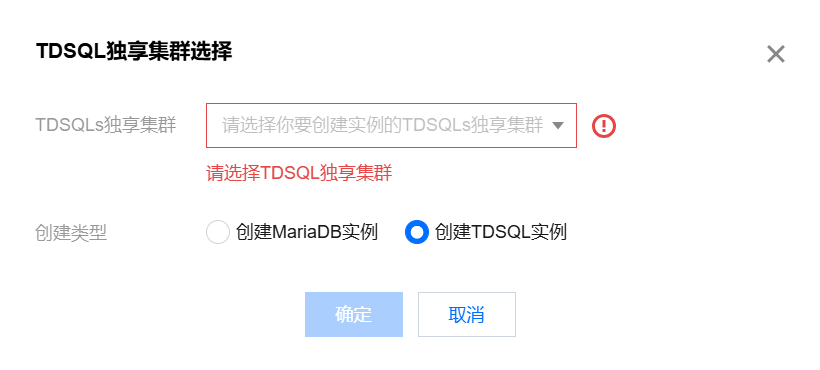 在弹窗中为您的 TDSQL 选择