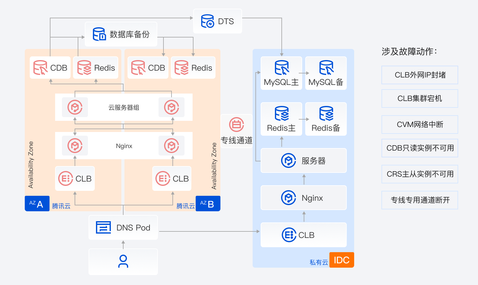 云上跨可用区部署是一种常见的容灾架构,在单可用区因为电力、网络、自然灾害等情况导致可用区故障时,灾备可用区仍然能够对外提供服务,保证服务的连续性。通过跨AZ容灾演练,您可以: