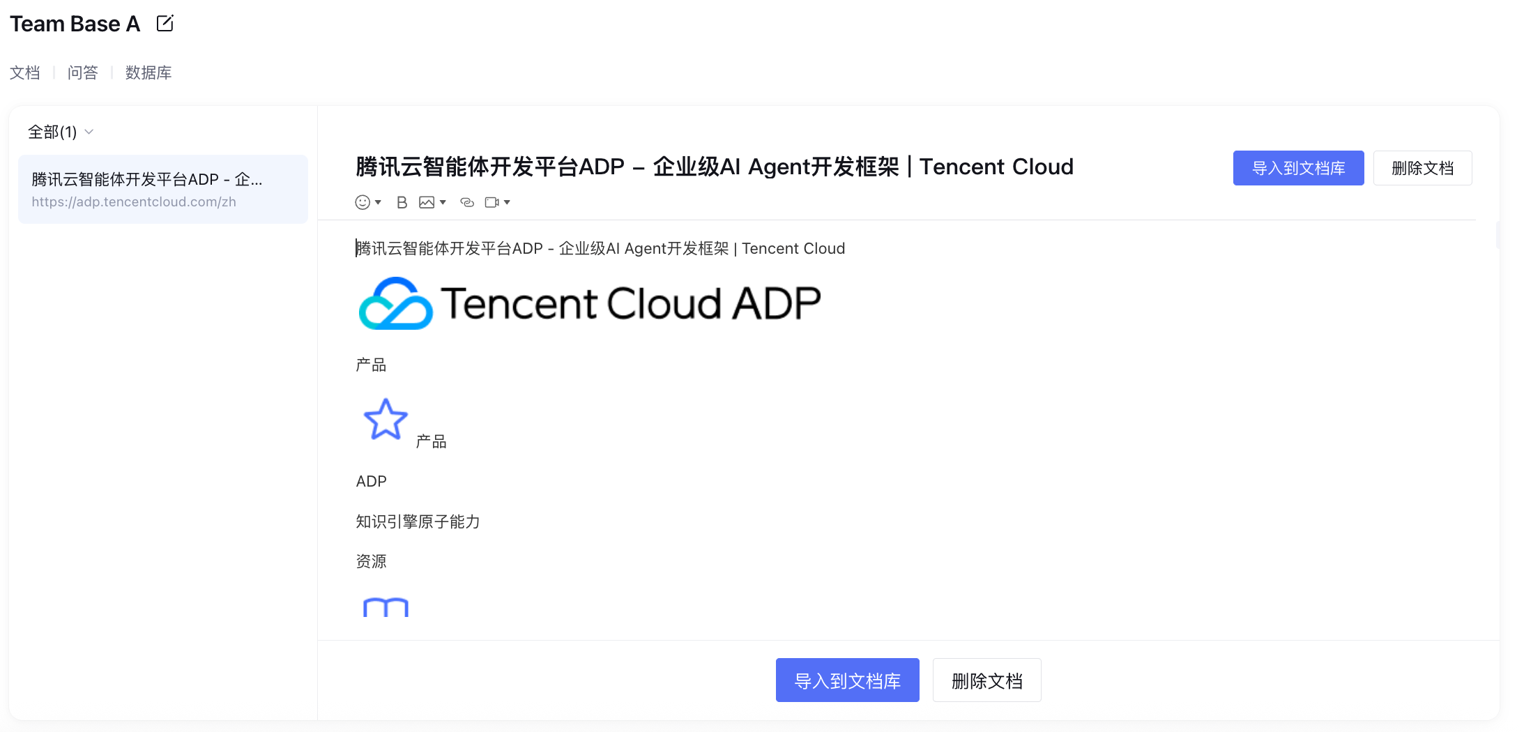 文档下载:从腾讯云智能体开发平台中下载已导入文档到本地。