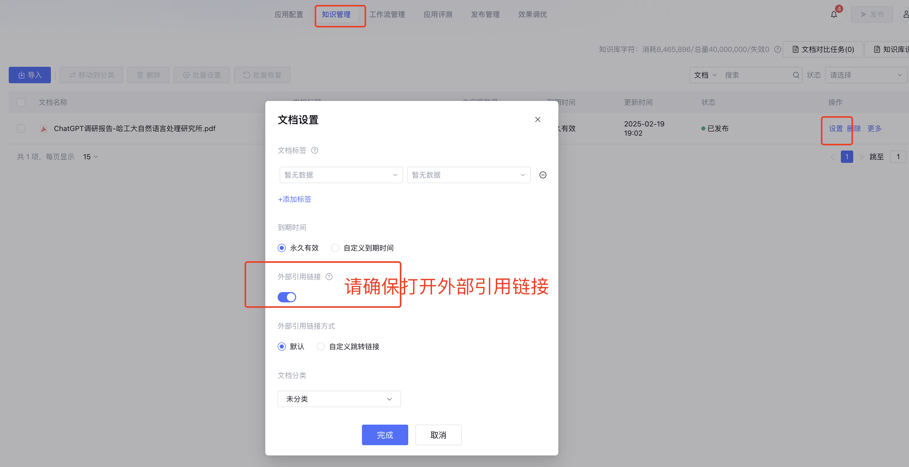 如果需要在问题中指定知识库进行检索,可以通过该字段传入相关的标签值, 具体请参考 知识库检索范围设置 。 11. 用户会话端不展示参考来源