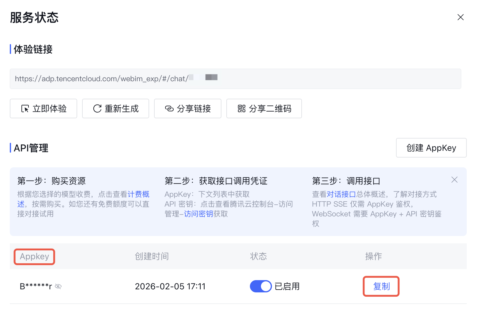 BotAppKey 是分享或者通过 websocket , sse HTTP 调用的时候用来获取访问通证的一个参数。