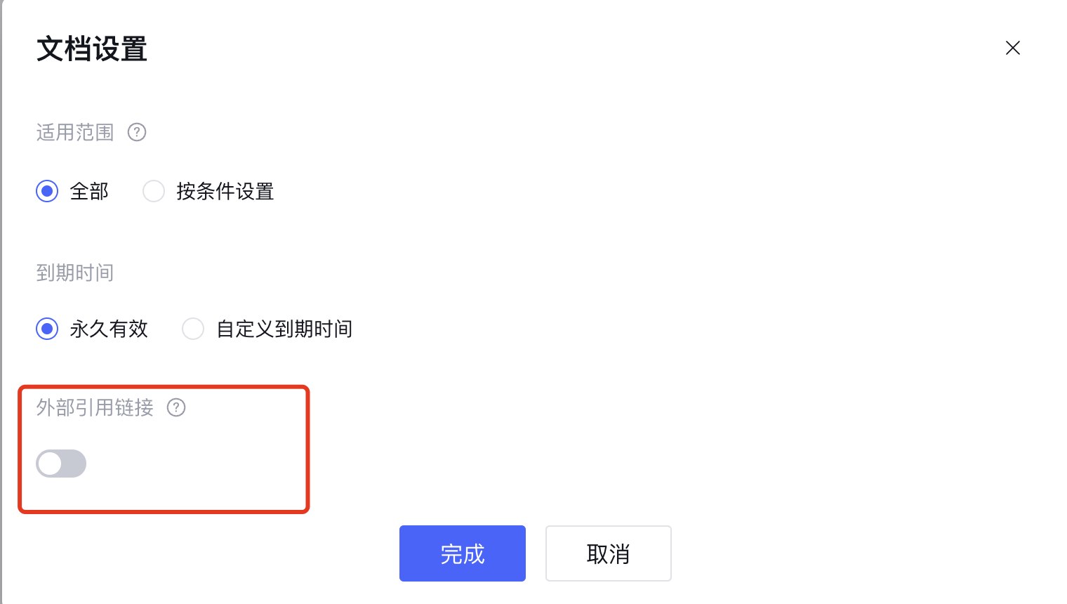 1. 确保文档已打开外部引用链接, 可以通过批量设置的方式打开,请按需开启。