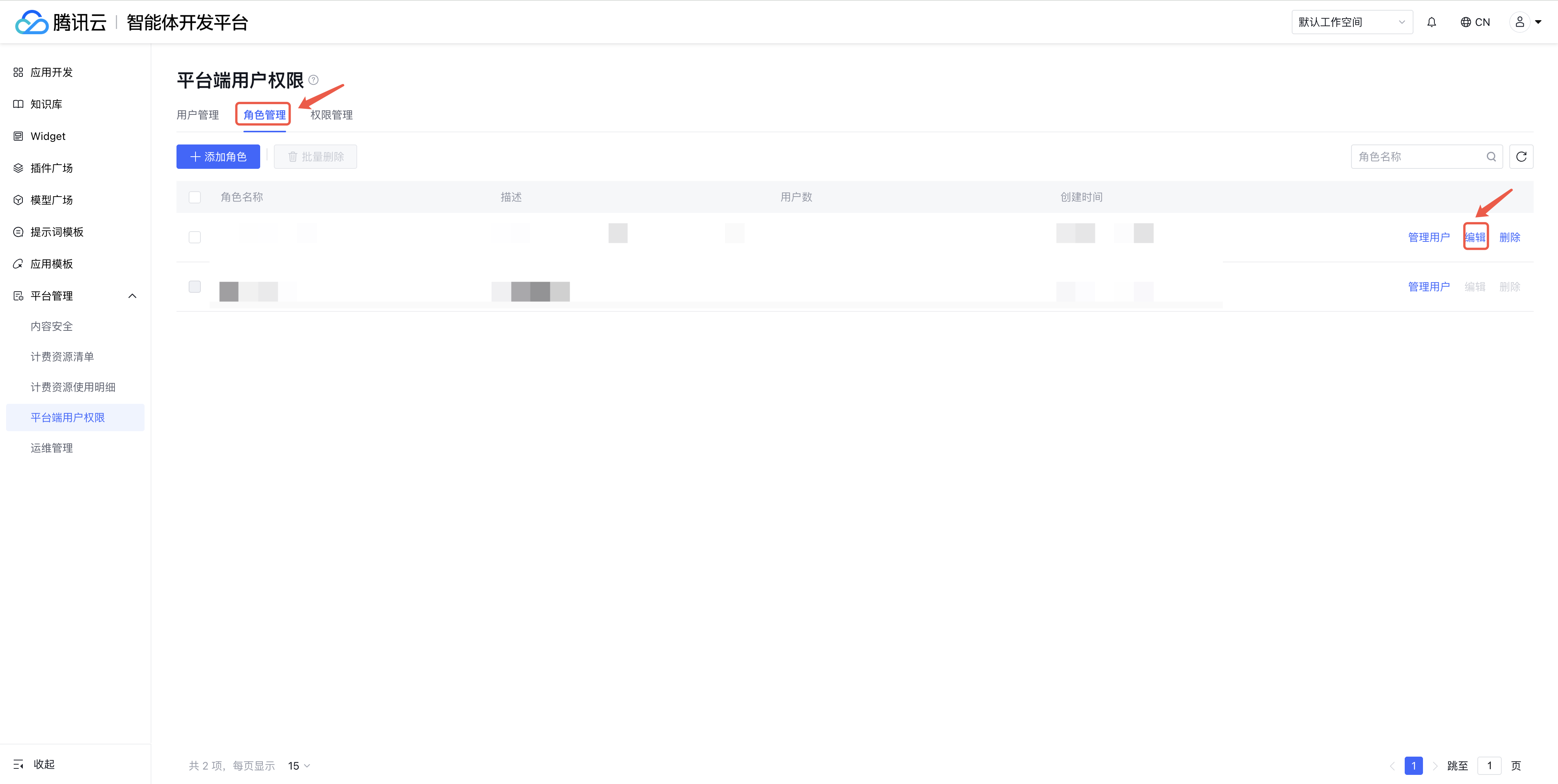 若新创建的子账号登录为此 链接,则需要手动在用户管理处给对应的子账号分配角色,对应的角色权限可自行在角色管理界面进行定义并编辑。 自定义角色编辑: