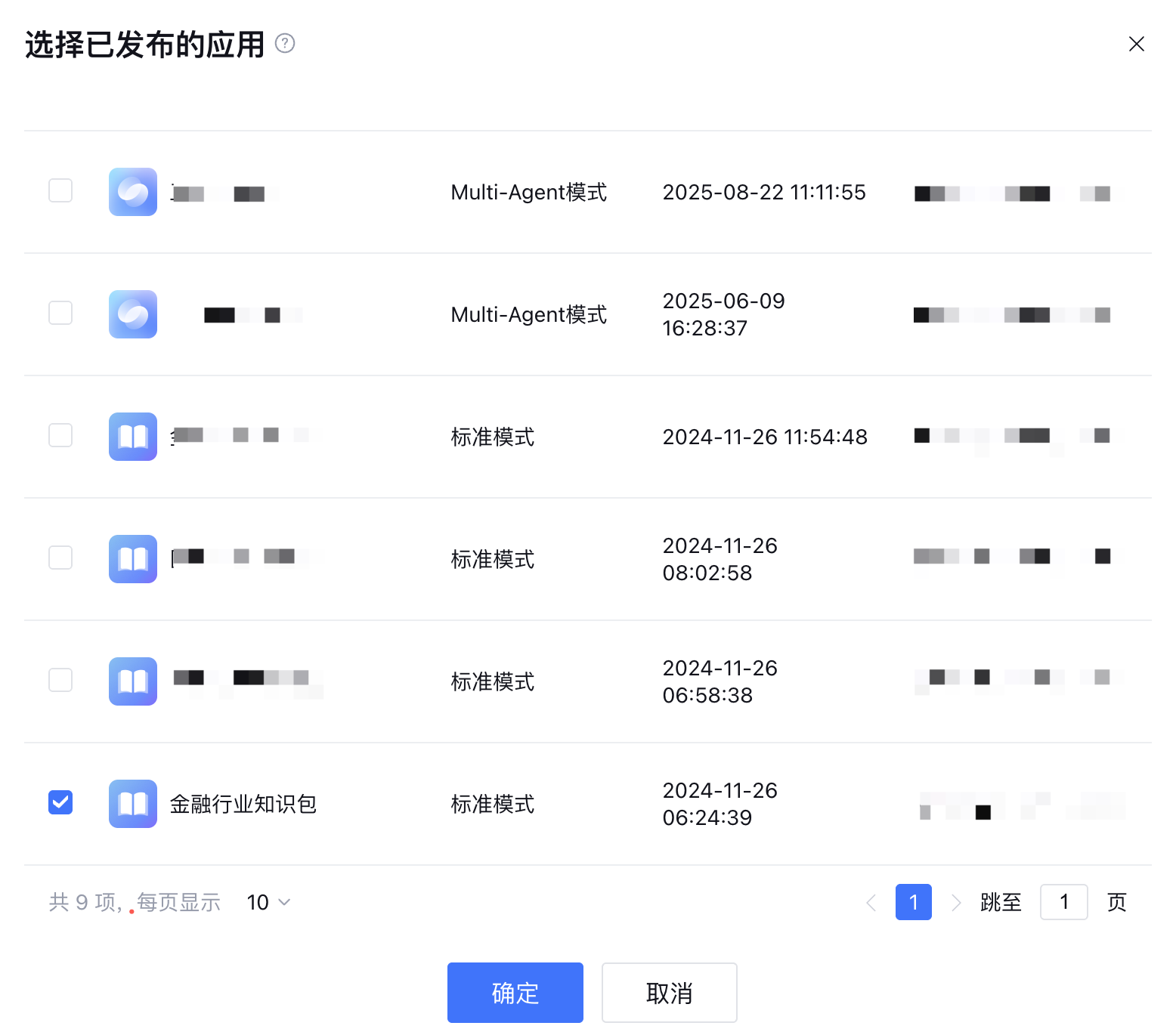 在已发布的应用列表中选择应用,单击确定。