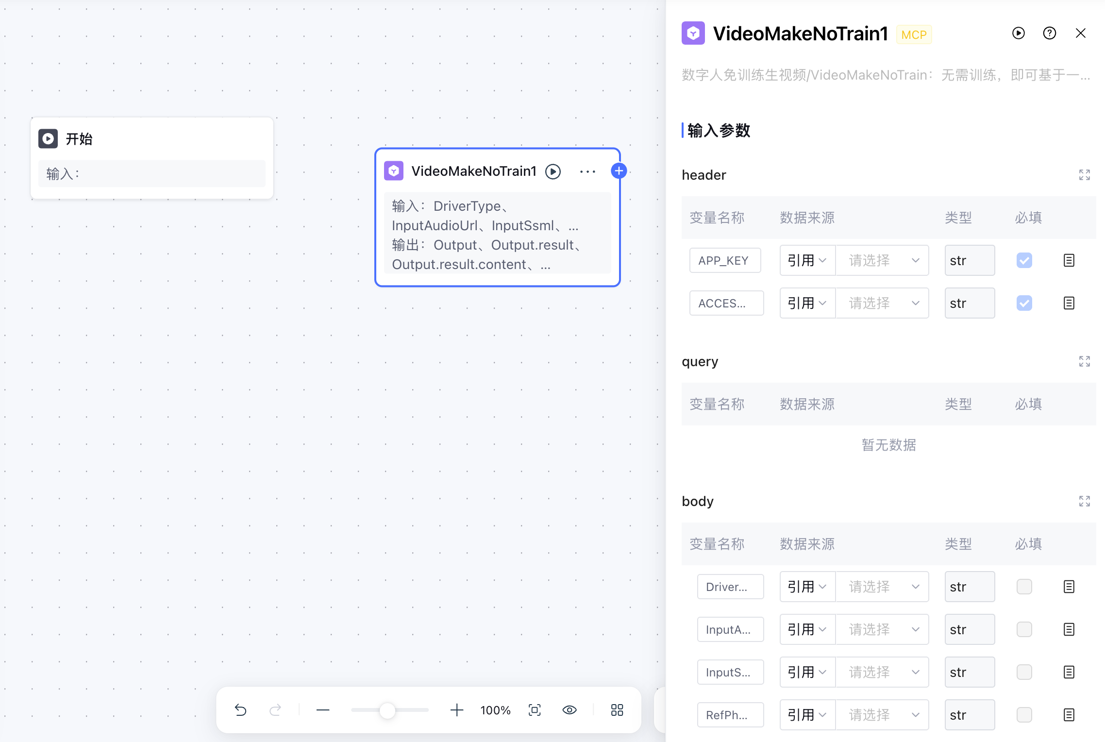 输入参数设置:支持配置默认值并选择模型是否可见。将部分参数设置为模型不可见后,工具将按照默认值进行调用,从而提升调用的稳定性。例如,对于密钥类参数,建议预先填写参数并关闭模型可见开关,这样在对话过程中无需收集密钥相关字段。默认值的设置方式包括以下两种: