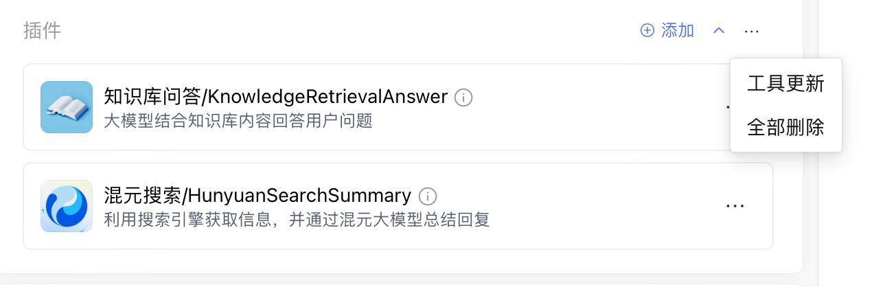 对于已添加至列表的工具,支持工具更新和全部删除。单击工具更新,可刷新列表内所有工具的最新配置。