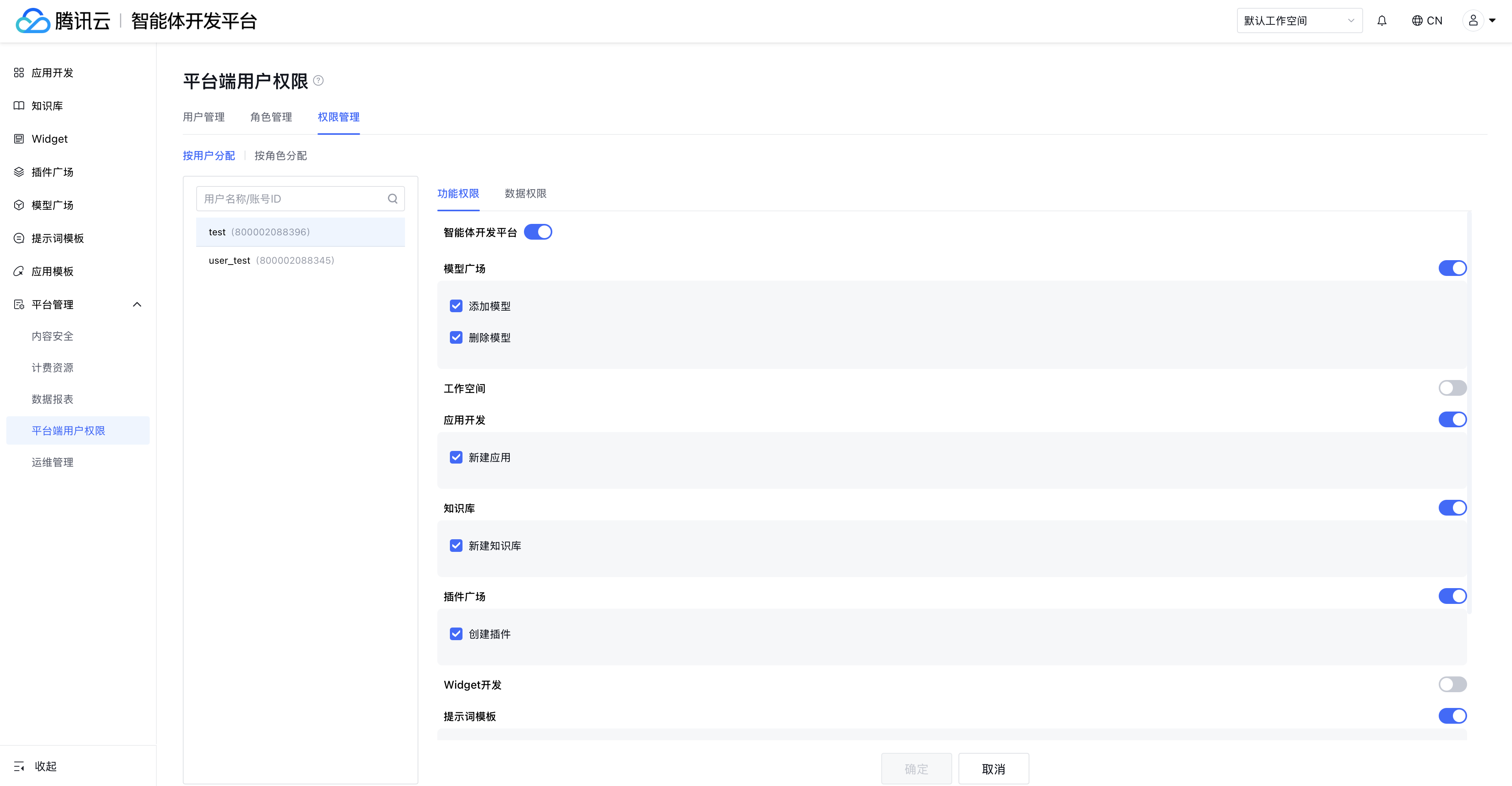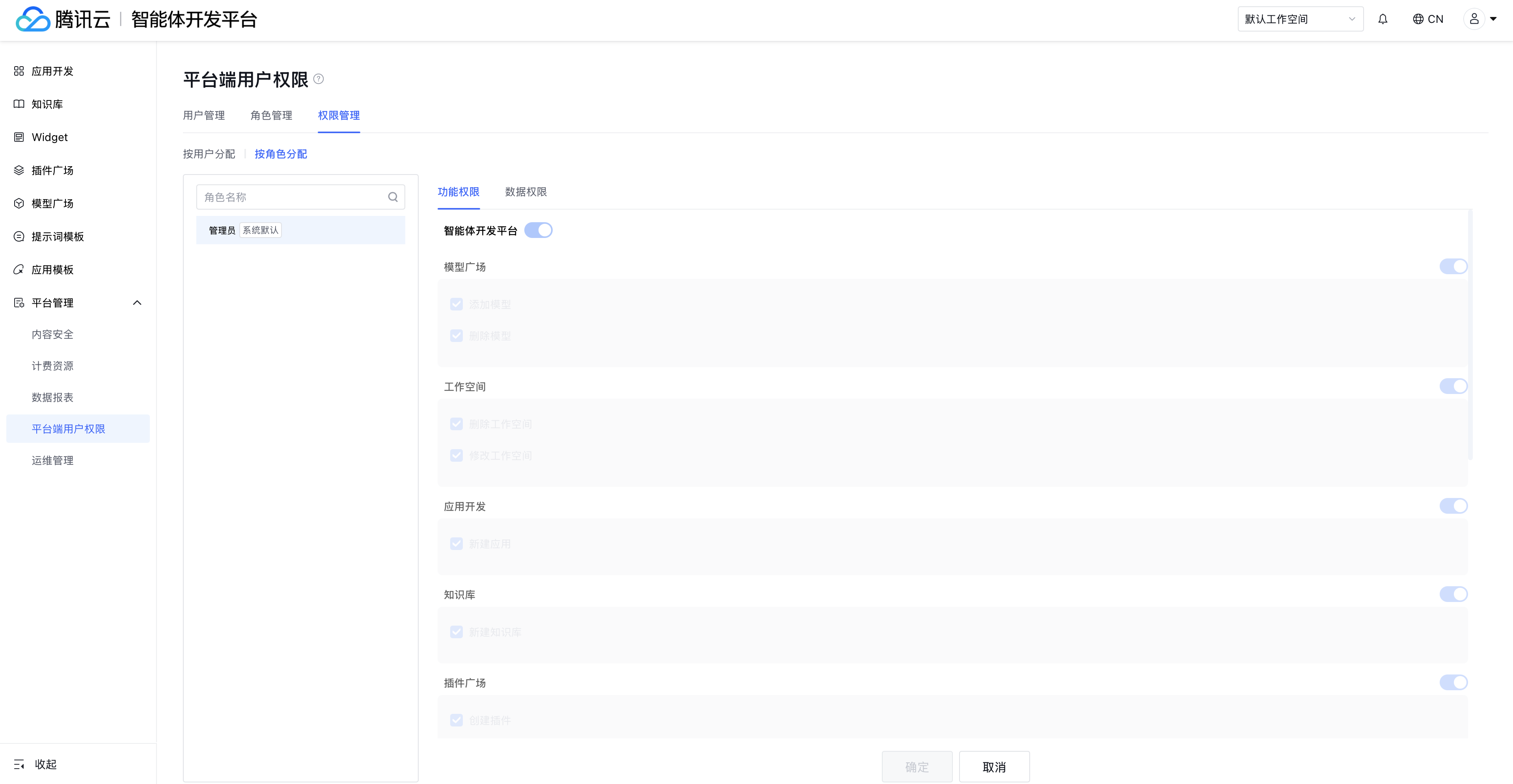 平台端用户权限属于空间级功能,支持在每个工作空间中单独控制当前空间成员的权限。平台端用户权限由3个功能组成,包括用户管理、角色管理和权限管理。