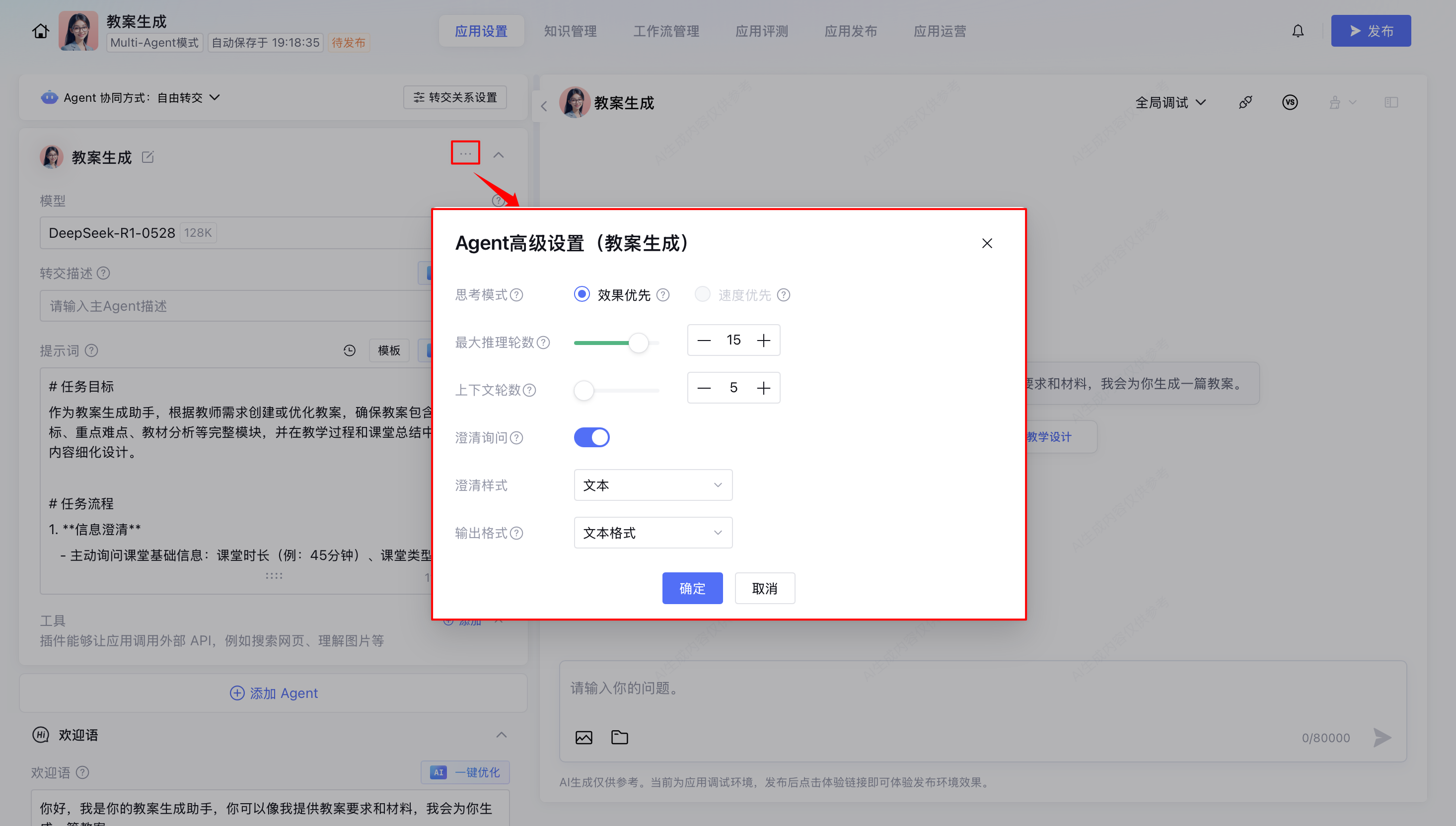 1. 单击进入 Agent 高级设置。