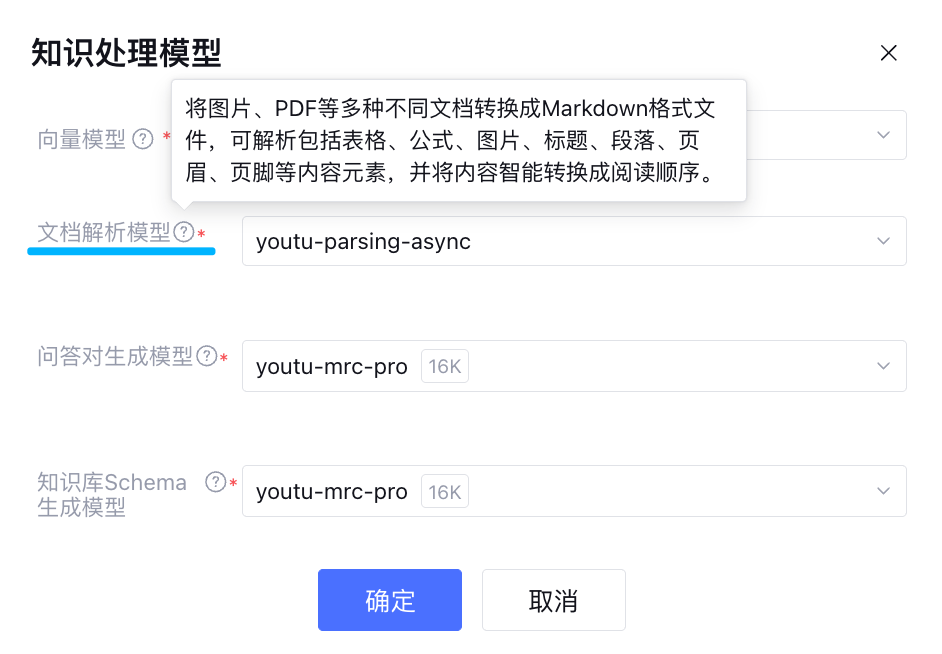1. Tencent Cloud ADP 官方内置文档解析服务: Tencent Cloud ADP 官方提供的文档解析服务由 ADP 团队自行研发。根据使用场景需要,分别提供同步解析服务(youtu-parsing-sync)、异步解析服务(youtu-parsing-async)。