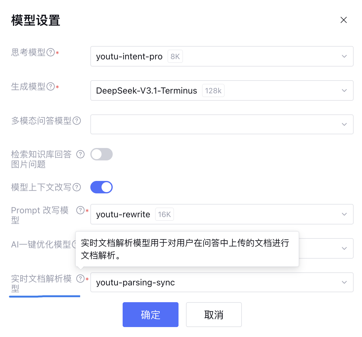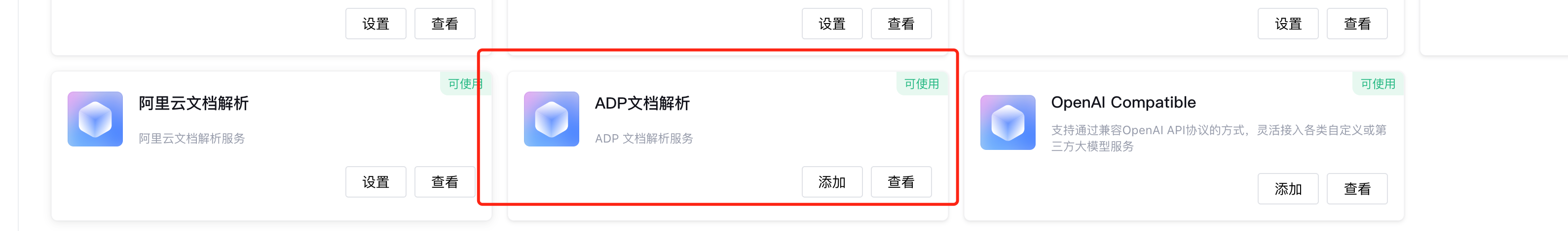 如需使用自定义文档解析服务,可进入模型广场,完成模型添加。