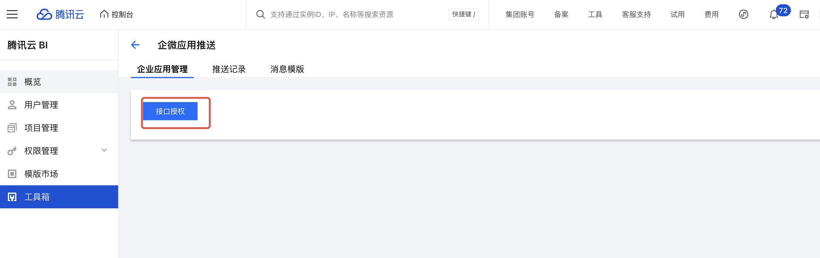当用户办公环境在企微,通过企微应用推送可以方便的推送信息到绑定企微账号,在使用企微应用推送前,需要完成应用的接口授权。