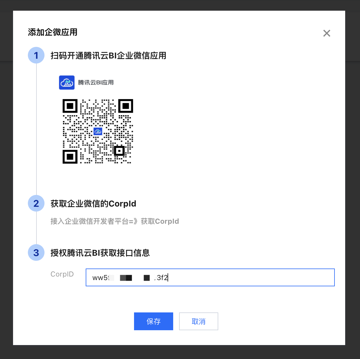3. 输入前面获取到 CorpID 并提交完成接口授权: