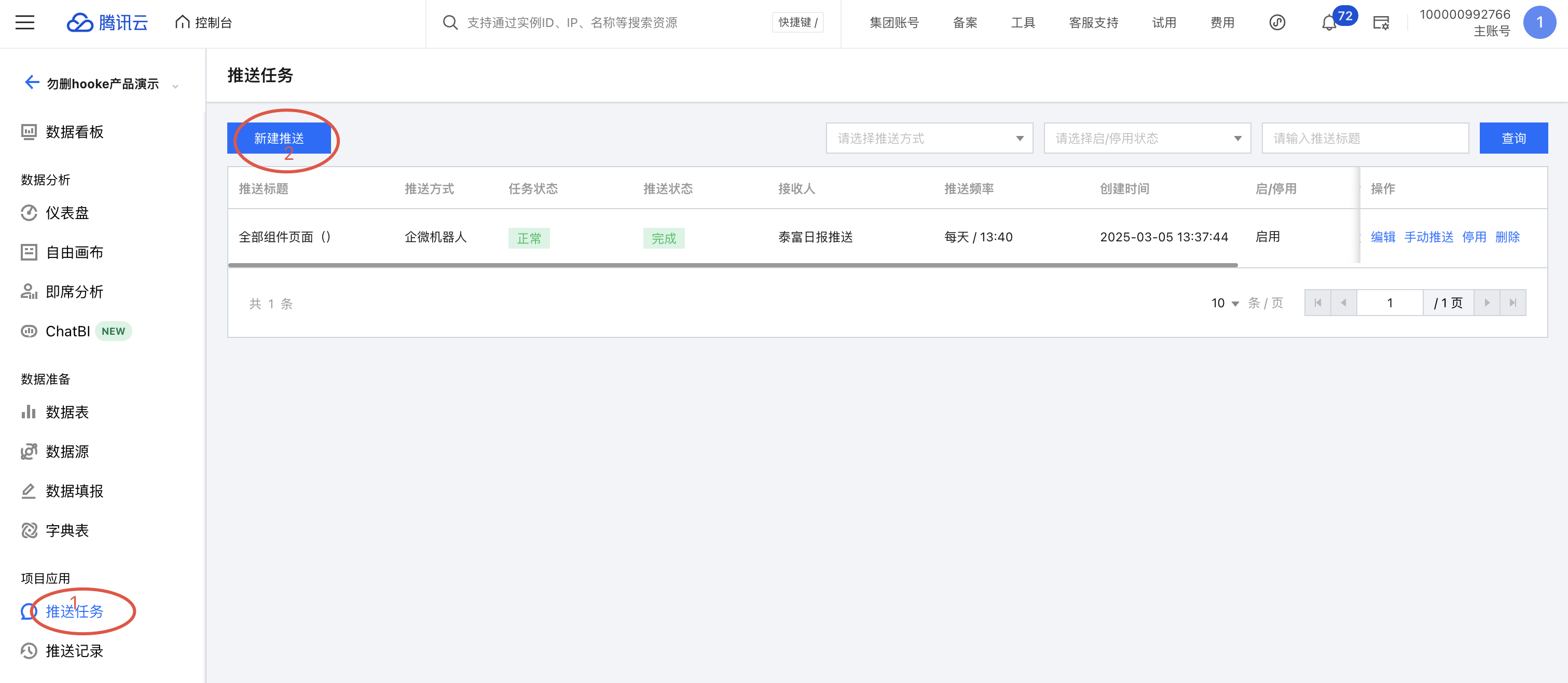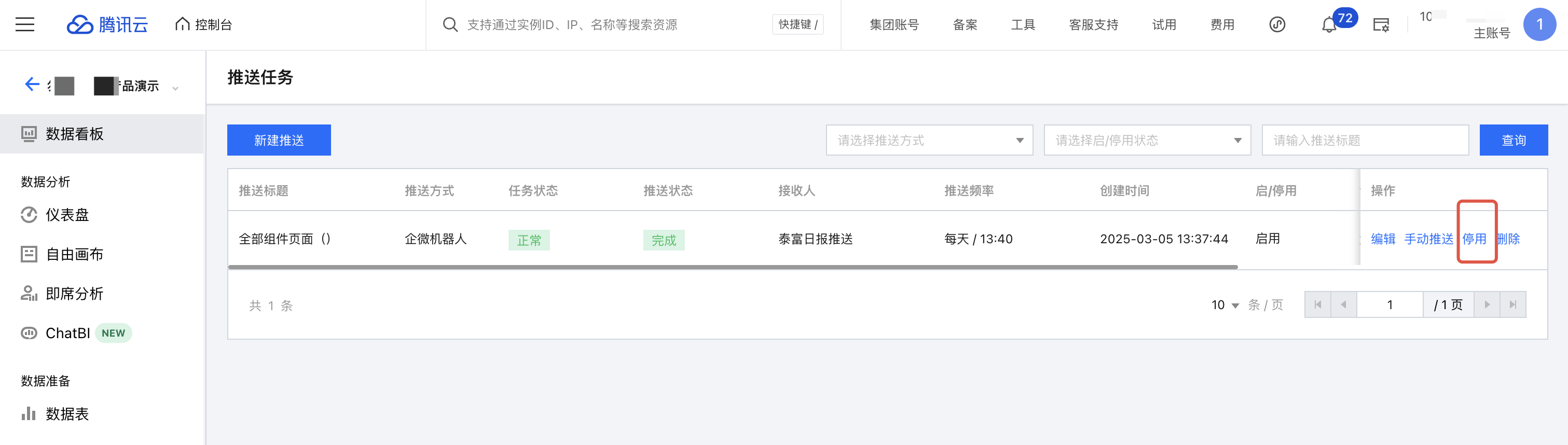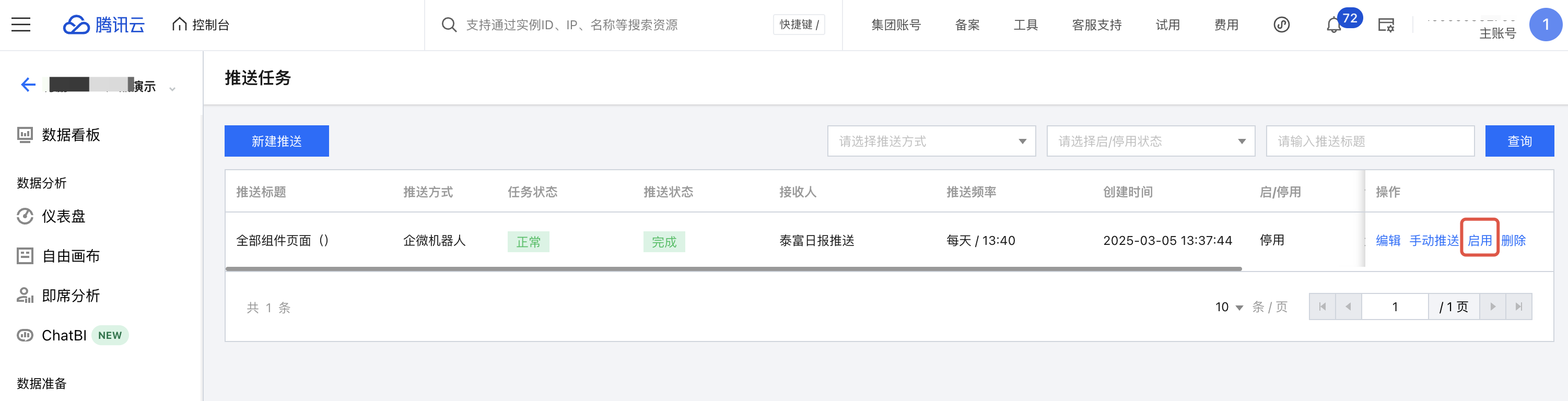 在某些情况下,需要暂时停用任务,不推送;待调整完后,又需要重新启用任务,继续推送。通过以下步骤可对任务灵活管理: