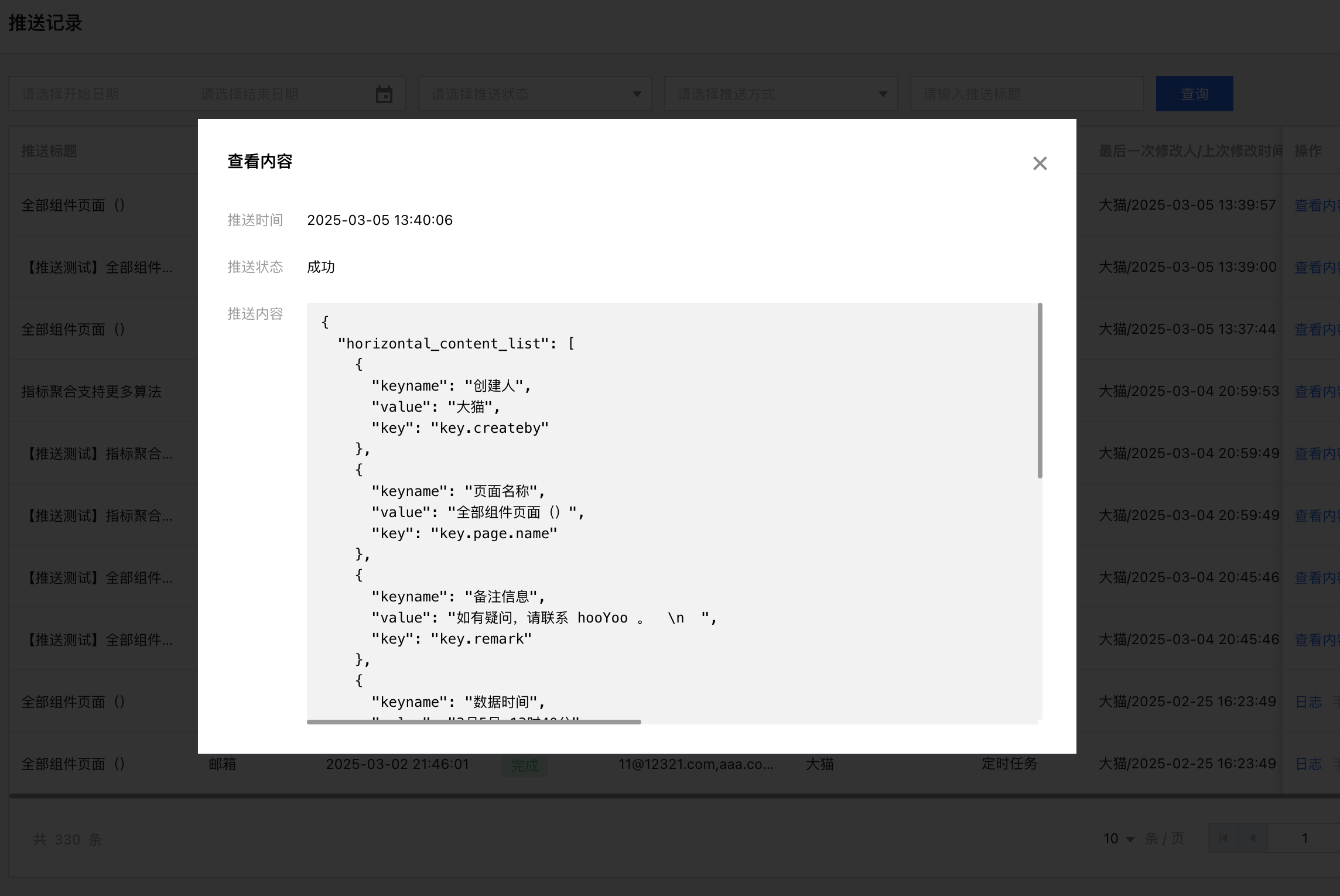 单击查看内容,可以查看本次推送的内容:
