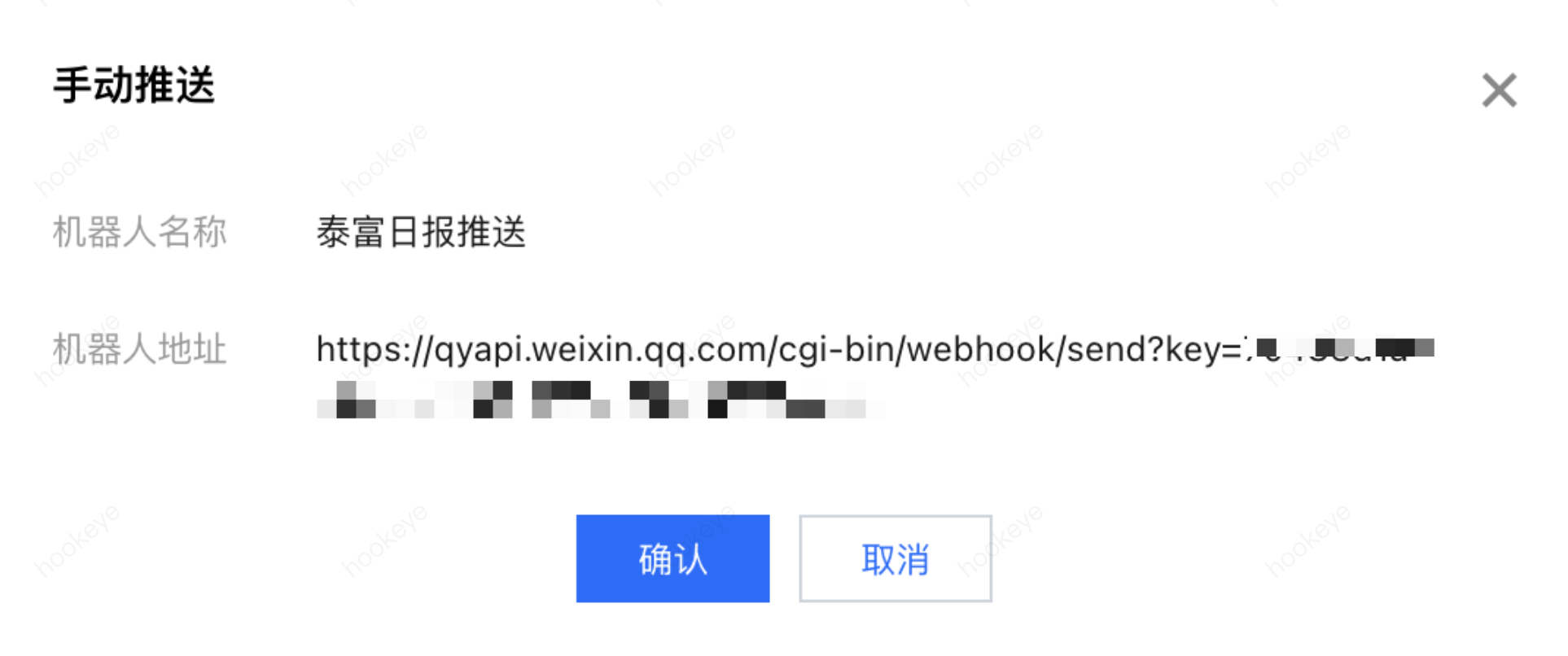 推送测试前,必须填写接收测试消息的机器人地址,建议不要和正式推送的机器人使用一个,以免打扰正式推送对象。