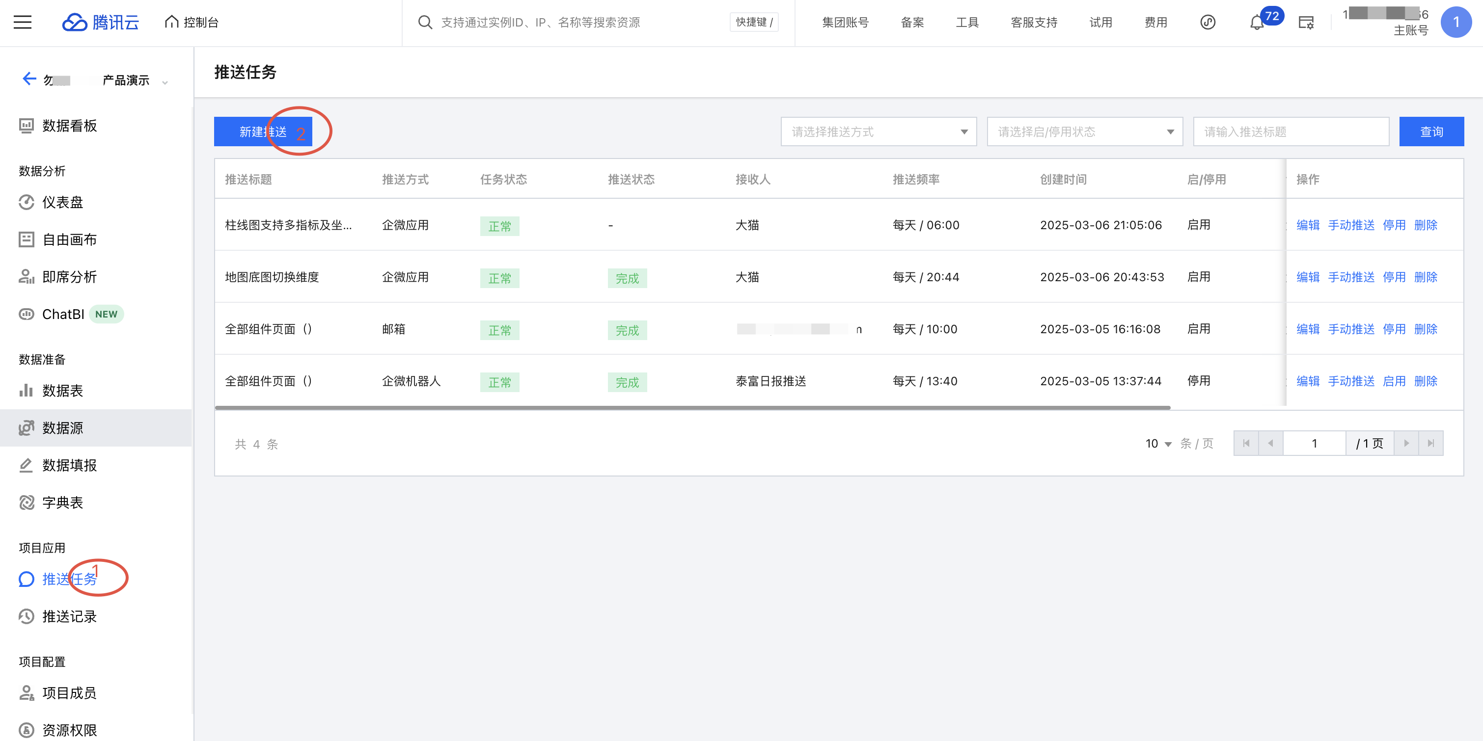 1. 进入项目管理 > 某项目 > 推送任务 > 新建推送: