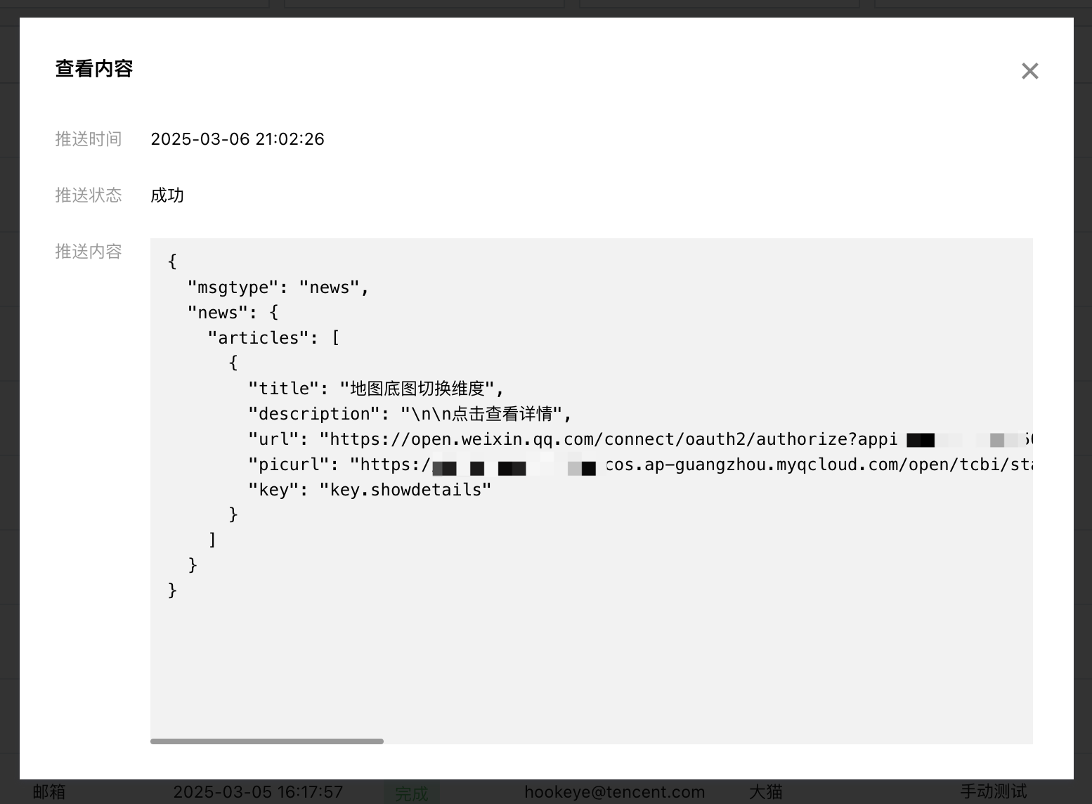 单击查看内容,可以查看本次推送的内容: