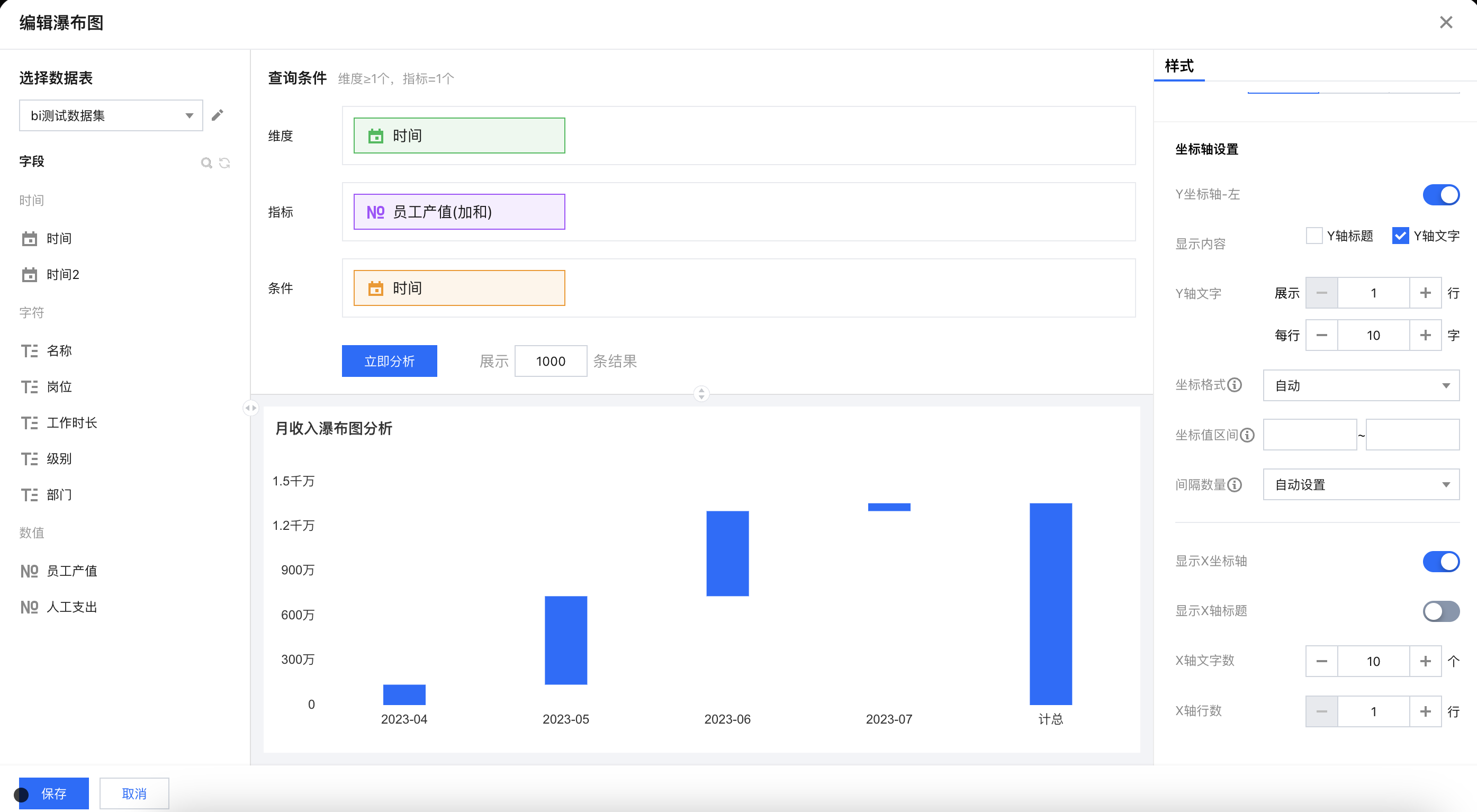 瀑布图 | 起始值 | 开启/关闭显示起始值 |