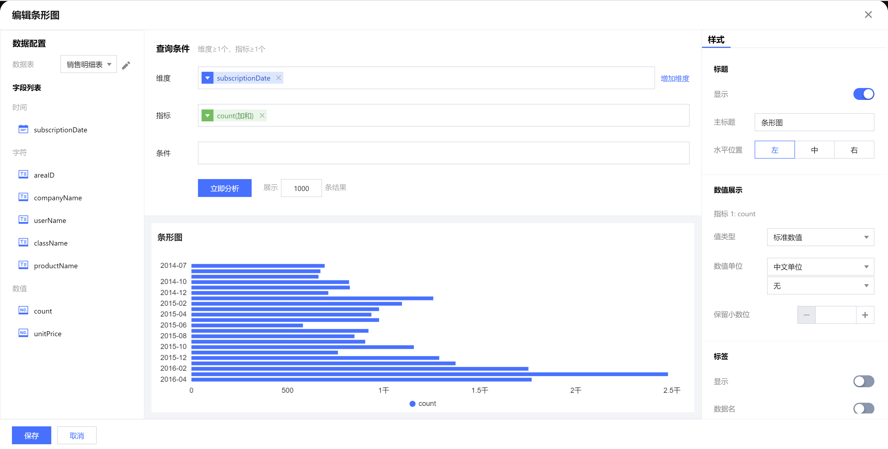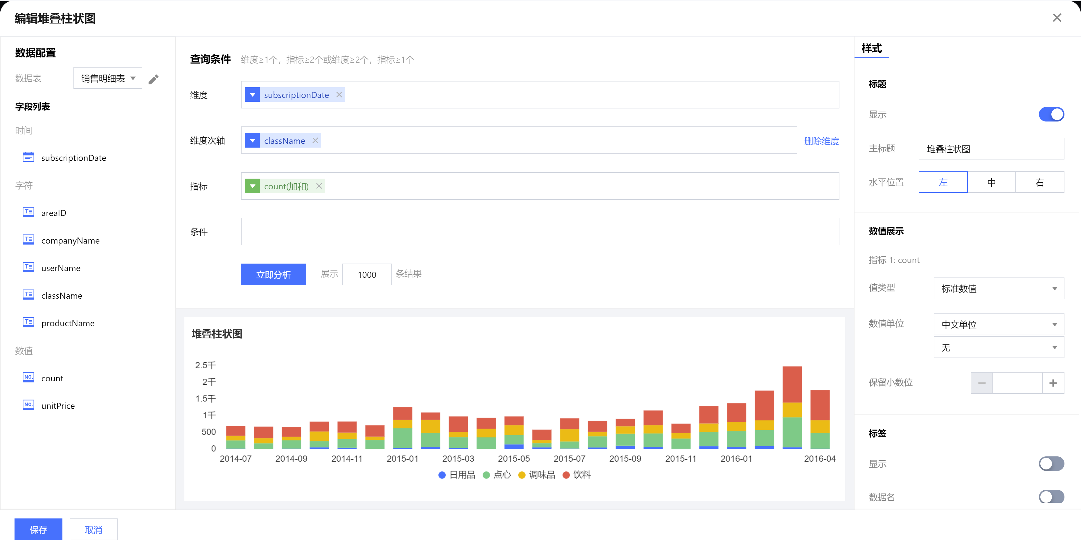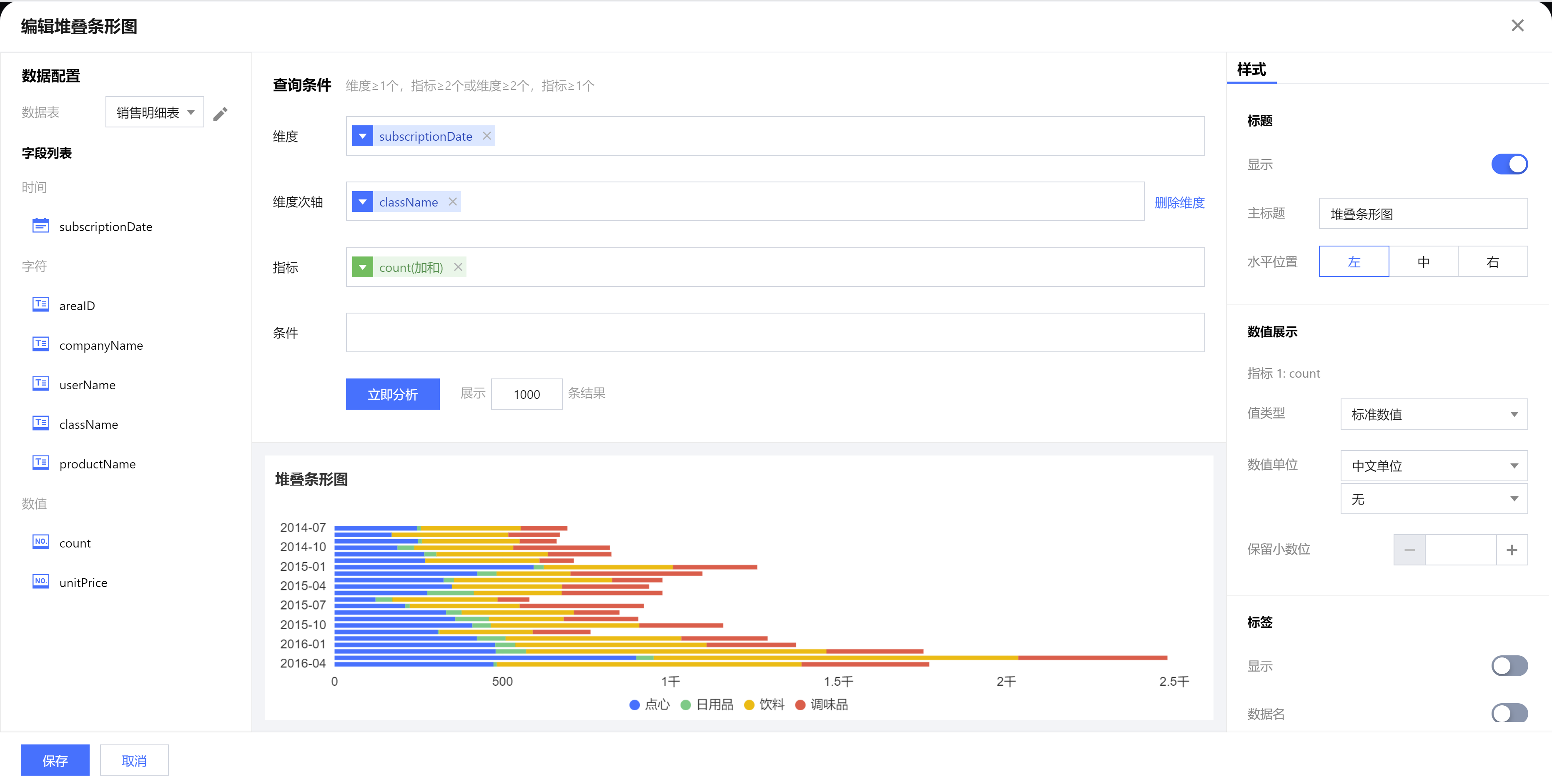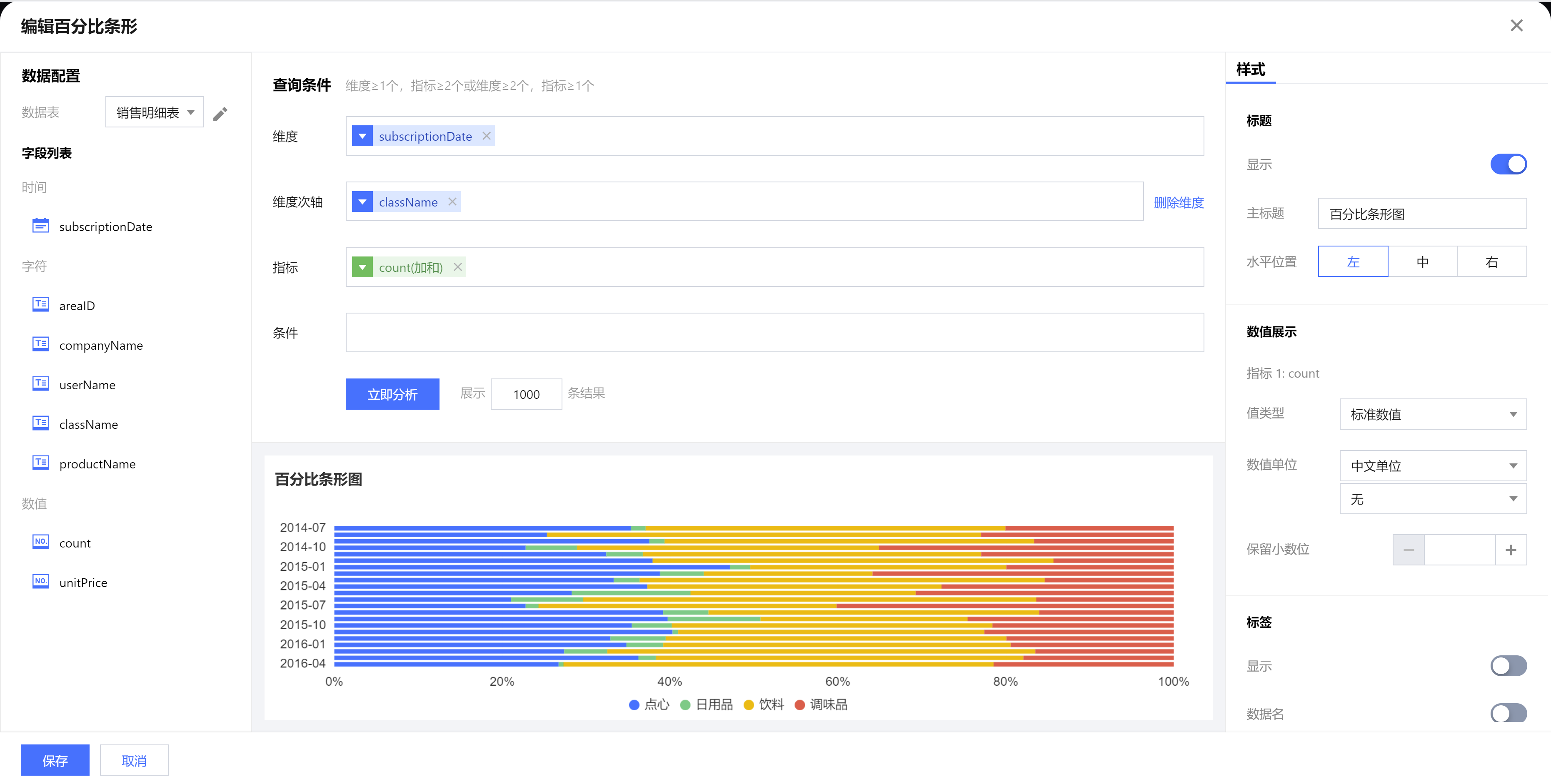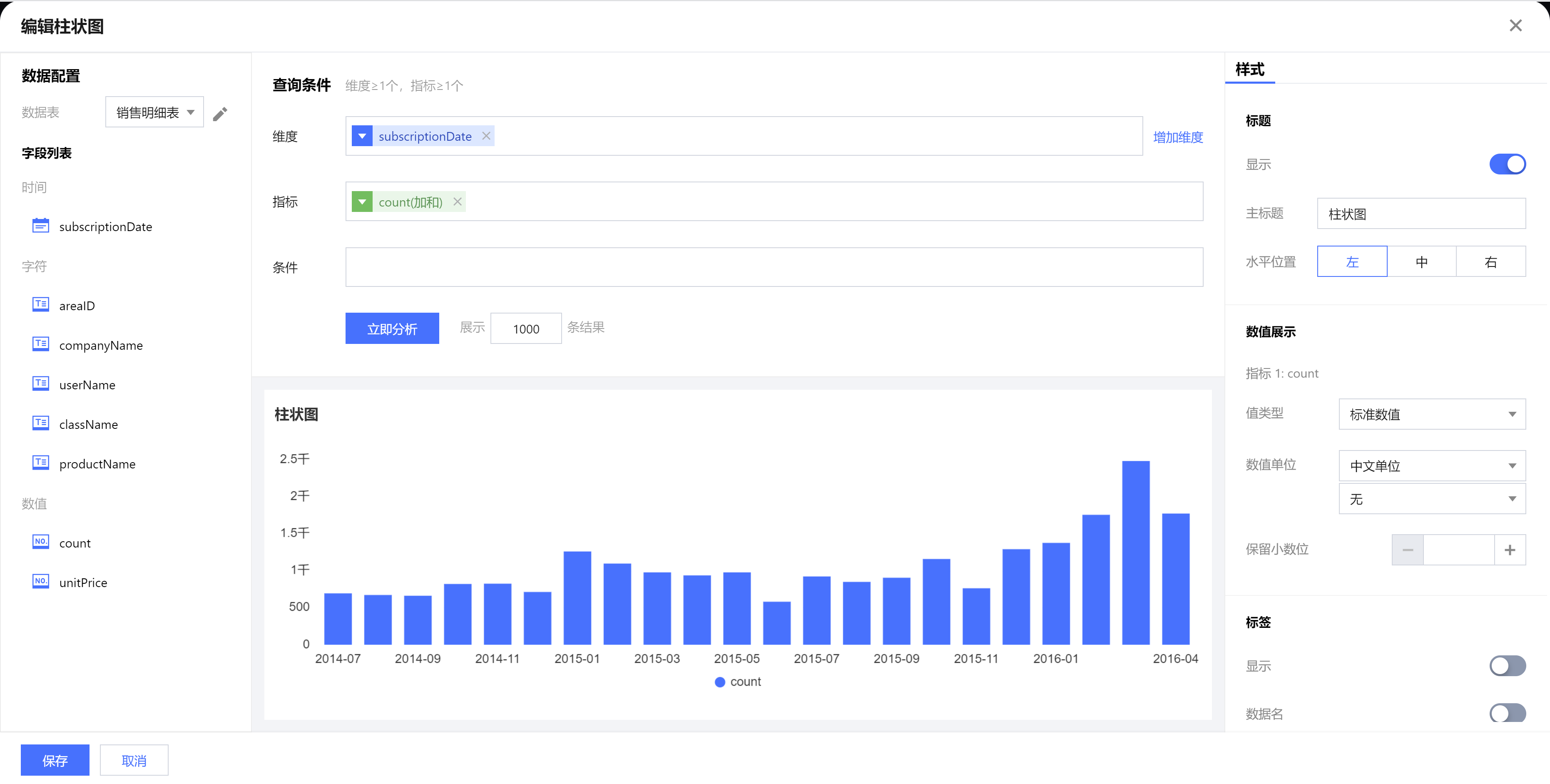 | 保留小数位 | 设置数值小数位的位数,如“1211.2334”,设置保留小数位为“2”,则展示“1211.23” |
