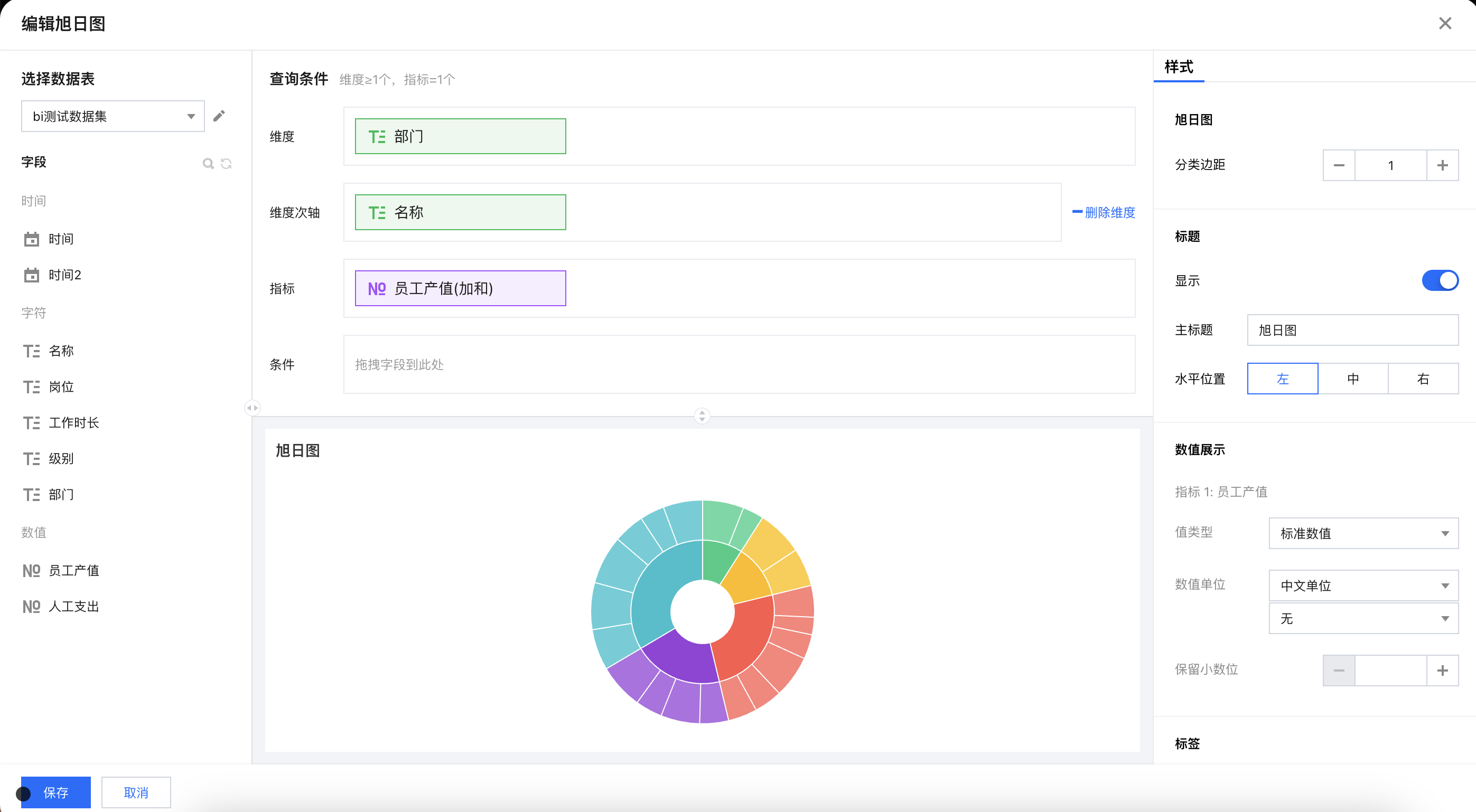 旭日图 | 分类边距 | 设置维度之间的间距,区分两个维度的大小 |