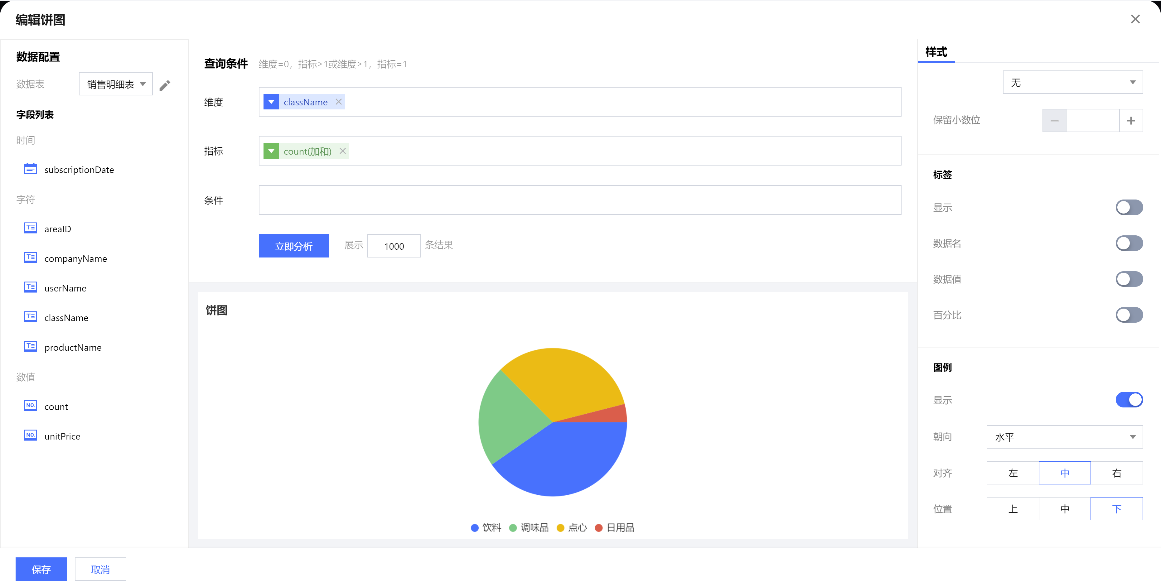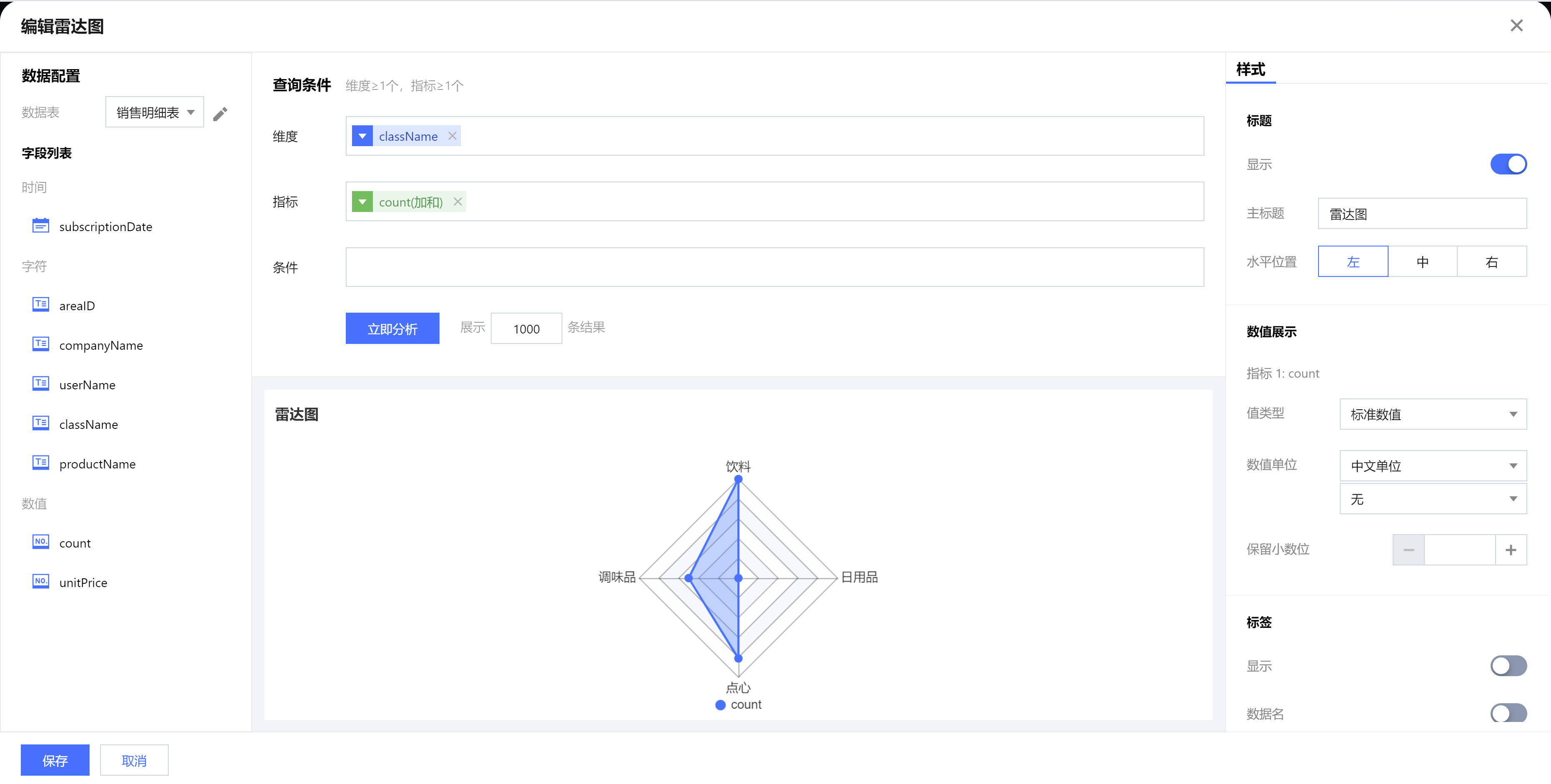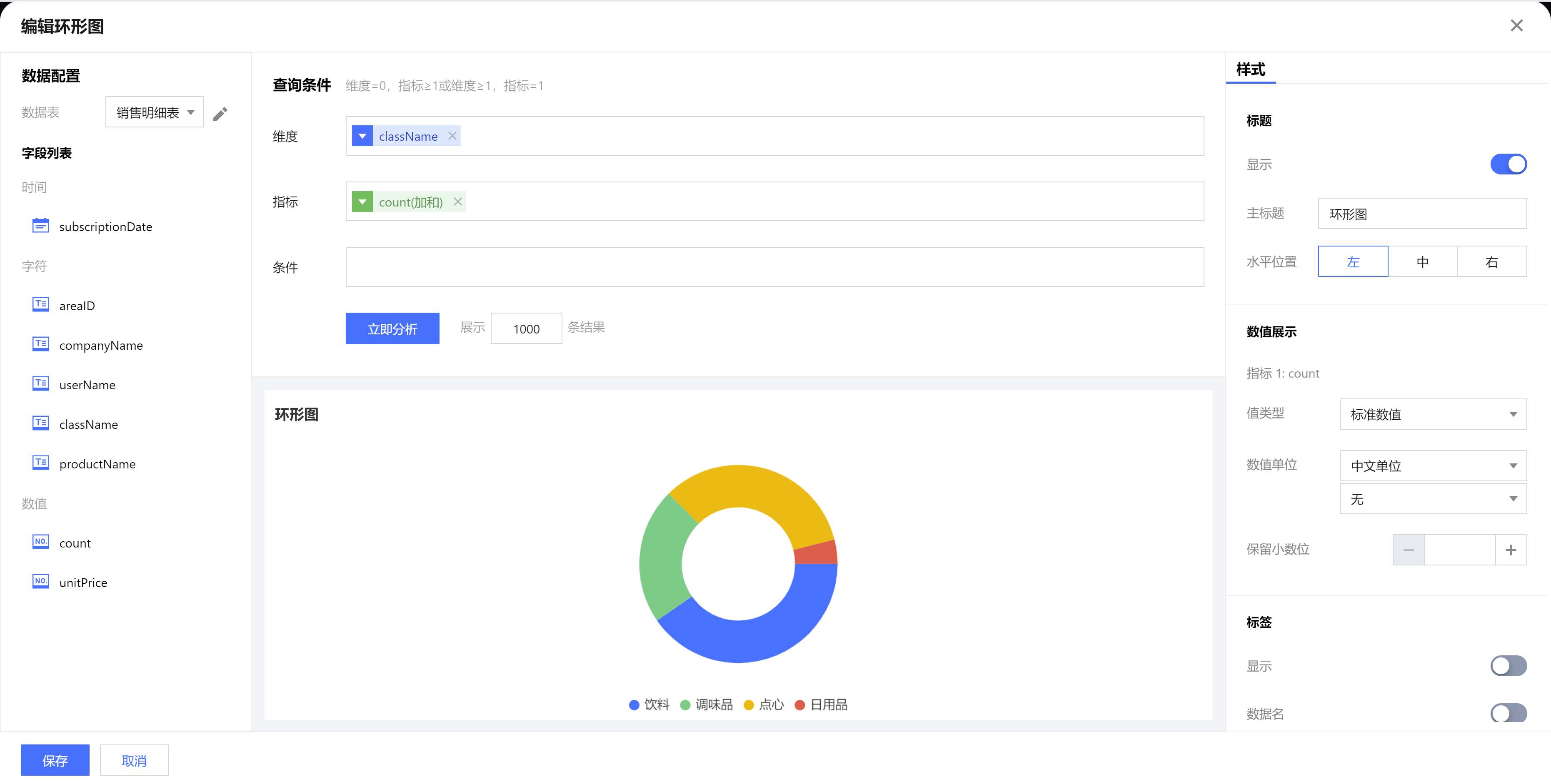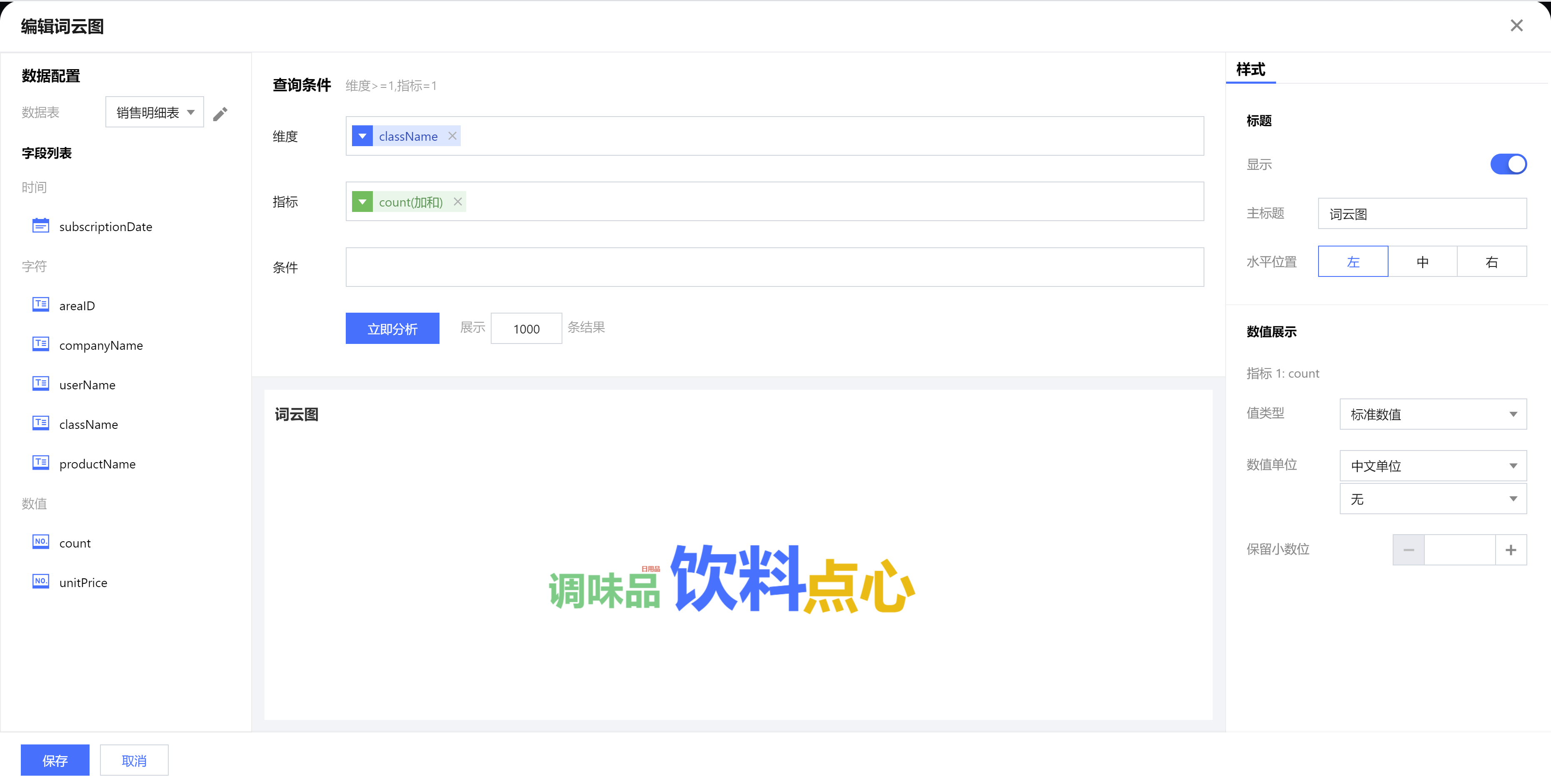 | 保留小数位 | 设置数值小数位的位数,如“1211.2334”,设置保留小数位为“2”,则展示“1211.23” |